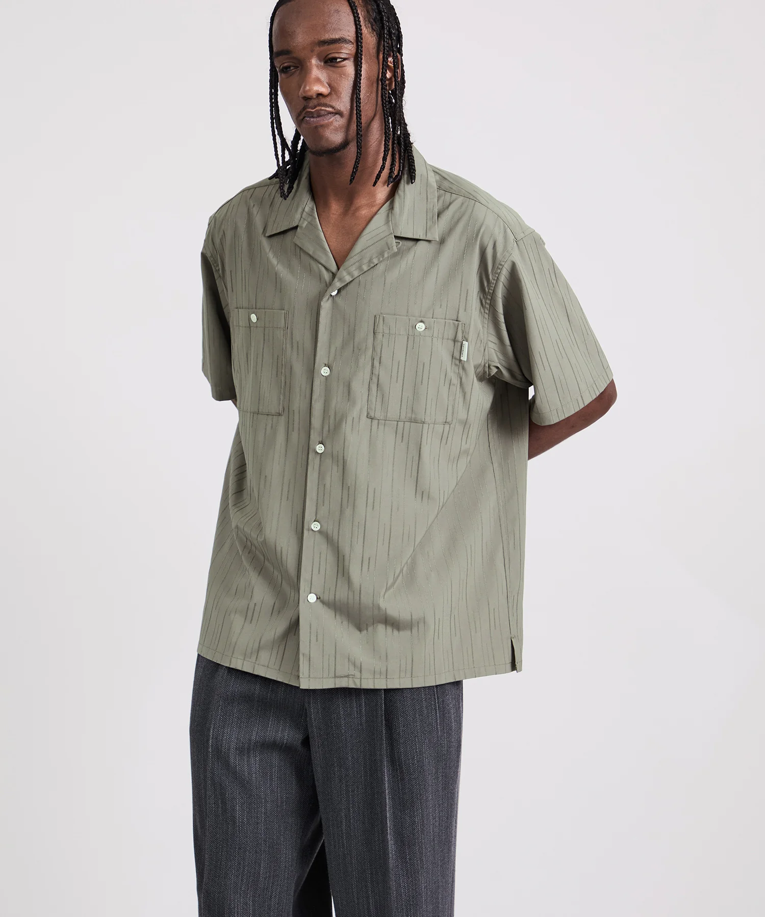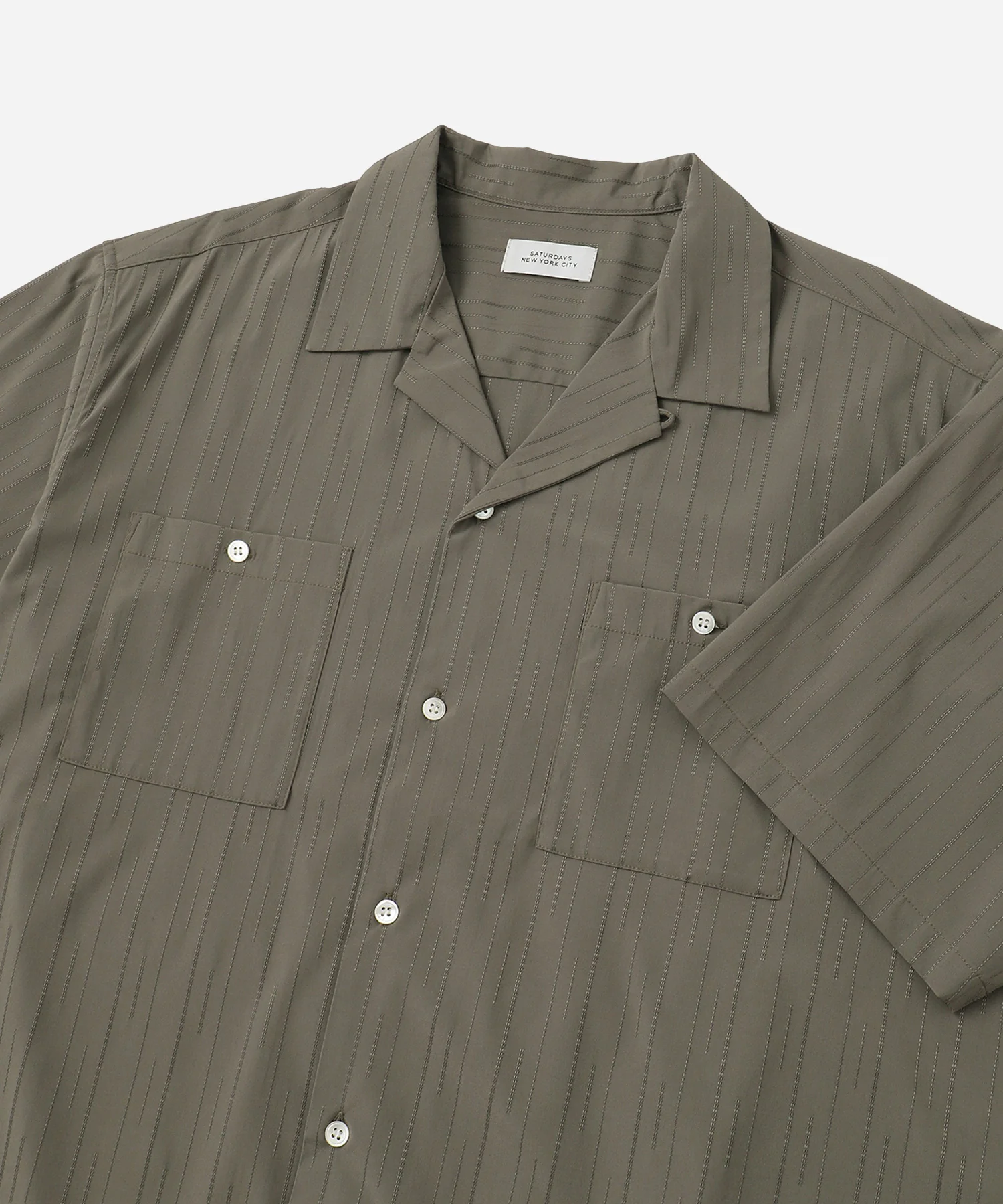 The Canty Dobby Stripe Short Sleeve Shirt in Olive Green by Saturdays NYC.
