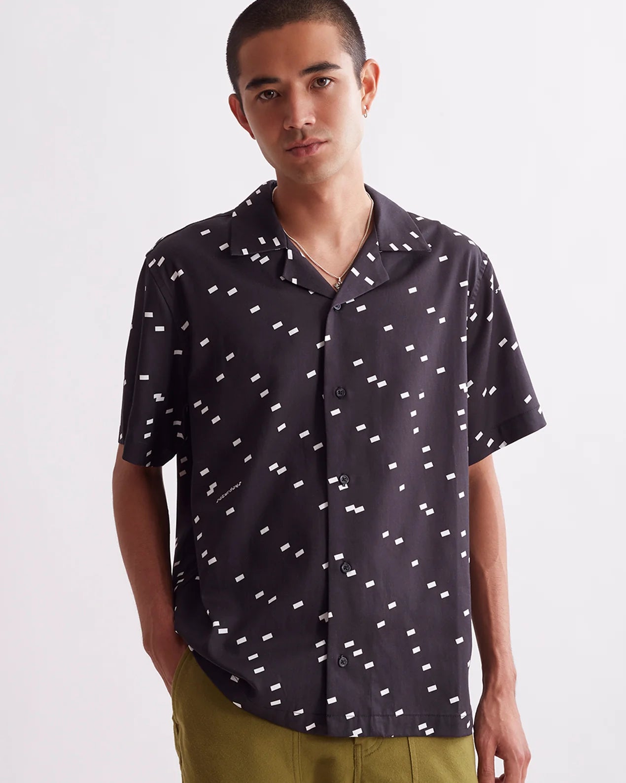 The Canty Light Reflection Short Sleeve Shirt is our classic relaxed-fit camp collar shirt cut in a Tencel-rich Cotton blend. The Light Reflection print is informed by themes from our seasonal story, mimicking dance floor lighting.