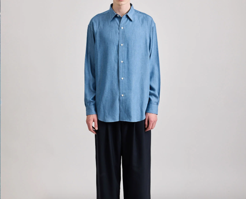This sophisticated Blue chambray piece from Saturdays NYC features a generous silhouette fashioned from eco-conscious recycled cotton with exceptional drape and softness. The Luis Long Sleeve Shirt presents minimalist elegance with its streamlined design, classic buttoned cuffs, and traditional collar construction. It delivers the coveted denim aesthetic with an elevated, lightweight refinement—perfect for the discerning wardrobe that values both sustainability and style.