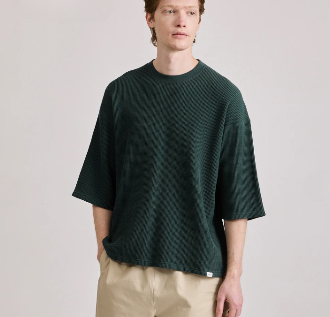 Waffle Half Sleeve Tee - Dark Green