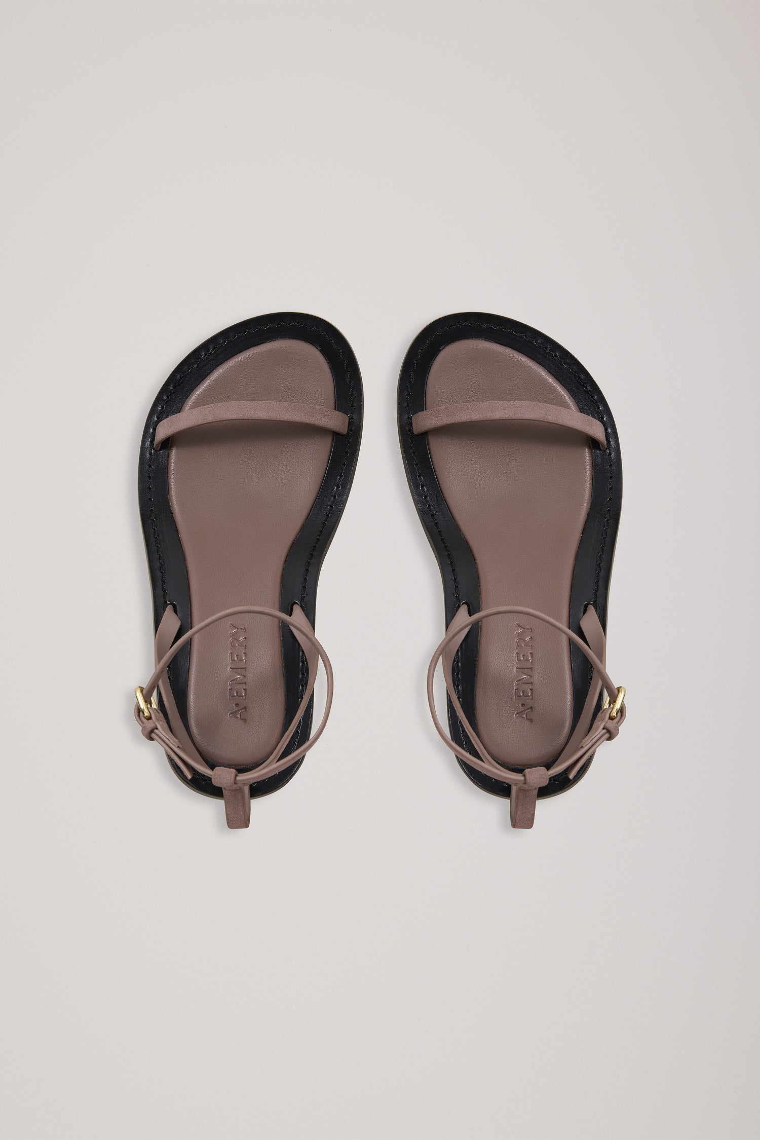 The Idris Heeled Sandal features a basic upper strapping, buckle ankle fastening, a round heel, and a new A.EMERY footbed. It is made with suede leather and boasts an exaggerated welt and stitch detail. The full leather construction ensures a quality, natural wear over time.