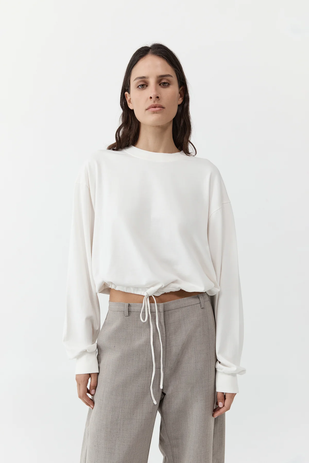 Drawstring Long Sleeve Top - Off White