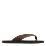 The Flora Sandal is a trendy flip flop with leather straps, a new leather footbed, contrast stitching, and a rubber tread sole. Made from suede leather, this style includes leather upper, insole, and rubber outsole. Full leather sandals are high-quality and develop a natural wear over time.