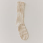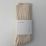 These socks are an all year round lightweight chunky ribbed sock available in two sizes in a mid-calf height, designed for wearing slightly slouched with slippers, sandals or your sneakers. Made from 95% soft organic cotton and 5% elastane for stretch