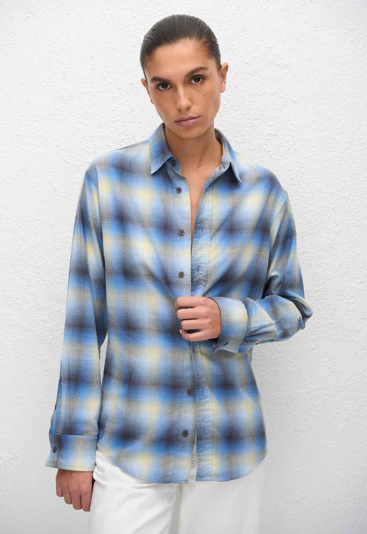Crafted from ultra-soft, brushed organic cotton, the Flannel Shirt in Ocean Check offers supreme comfort with an effortlessly stylish edge. Its relaxed silhouette makes it perfect for layering over a Baby Tee paired with our Relaxed Jeans, creating a casual yet polished look. Transition seamlessly from day to evening by styling it over your favourite swimwear after a refreshing late summer swim. This versatile piece combines breathable fabric with timeless design, making it an essential addition to your wardrobe for year-round wear. Elevate your casual style with the perfect blend of comfort and chic simplicity.