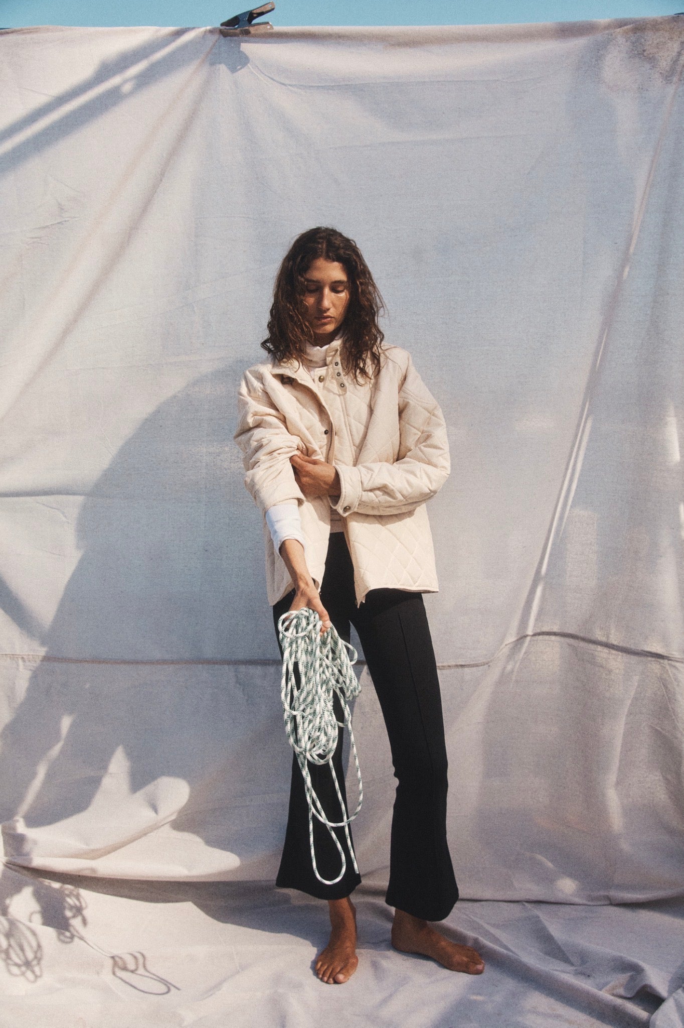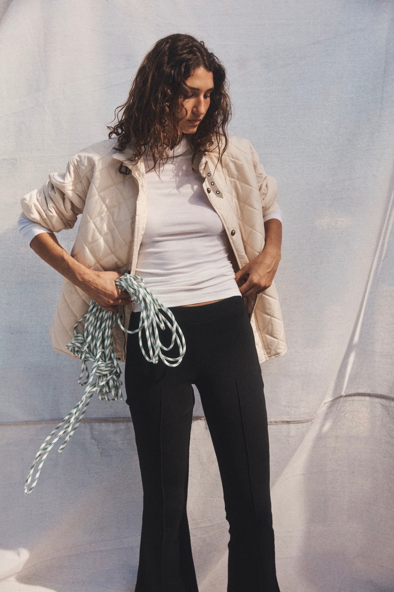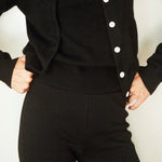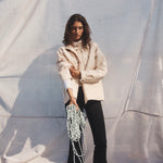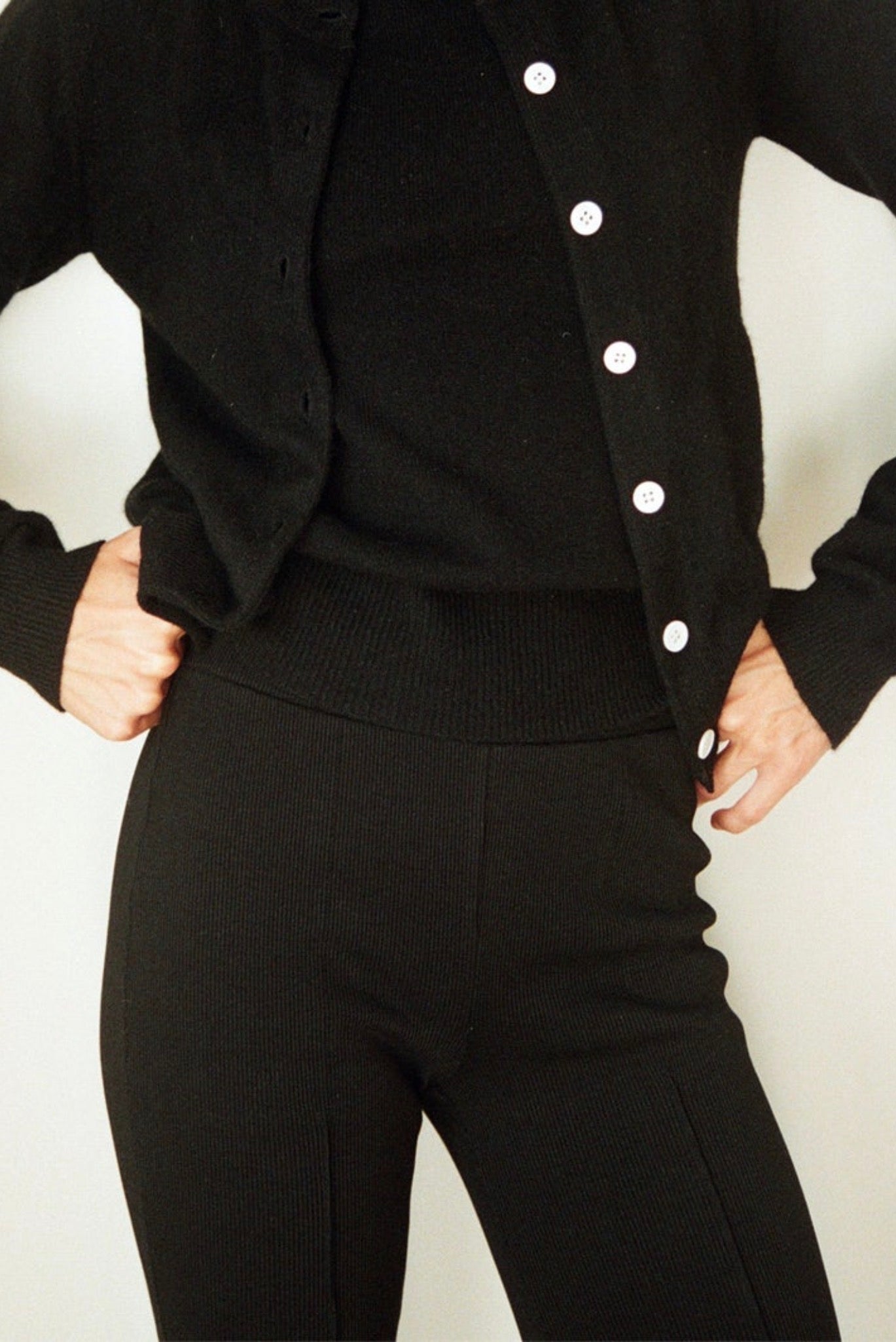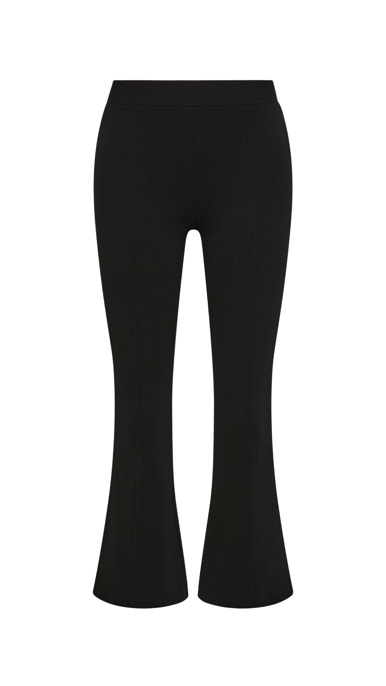 A fitted trouser in a stretchy, ribbed fabric with an elasticated waistband and subtle kick flare. If you are under 170cm we recommend choosing the Cropped length. Due to the nature of this fabric, some dye transfer is possible when styling with lighter colour clothes. We recommend a cold machine or hand wash before wearing light colours.