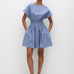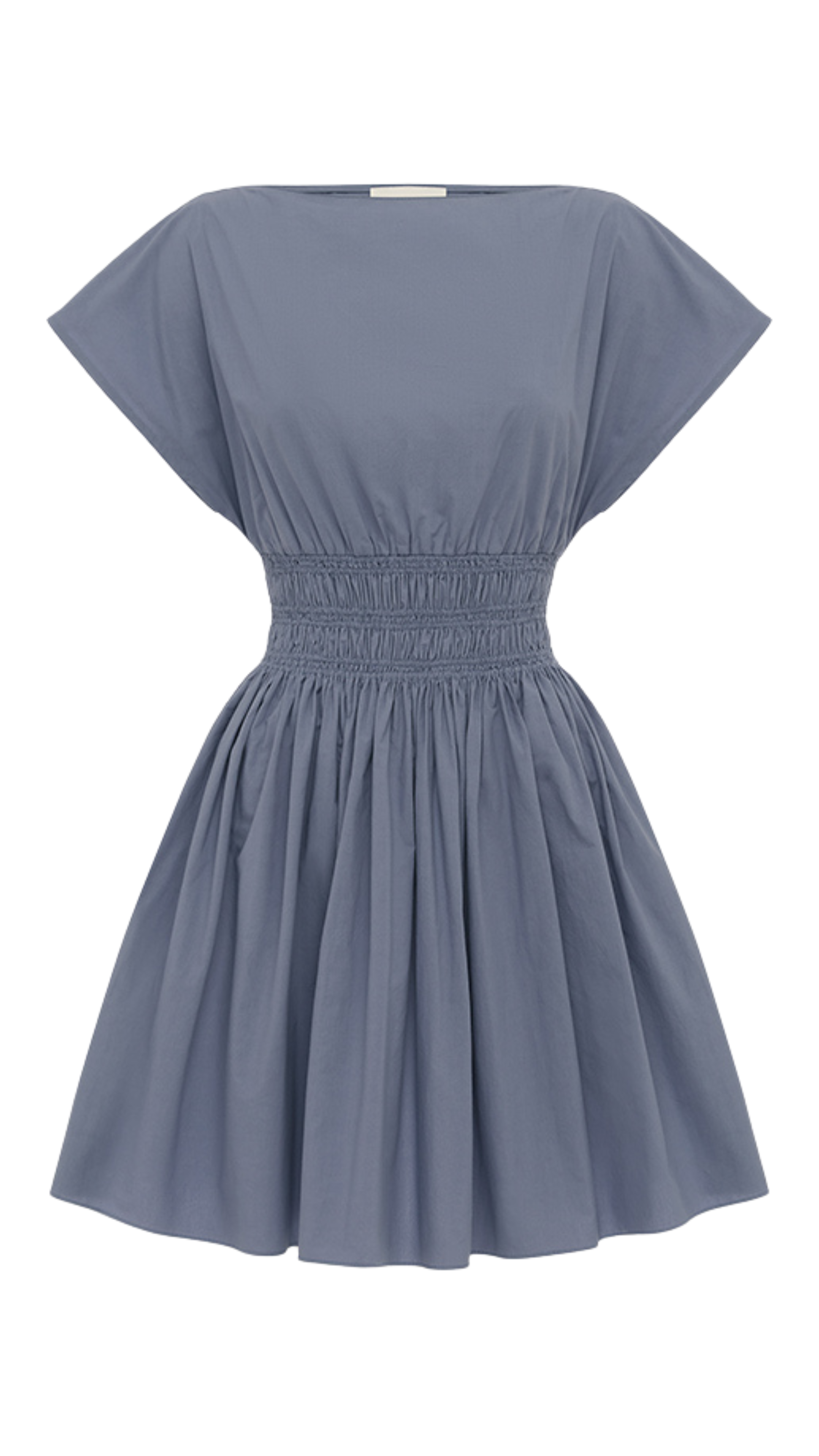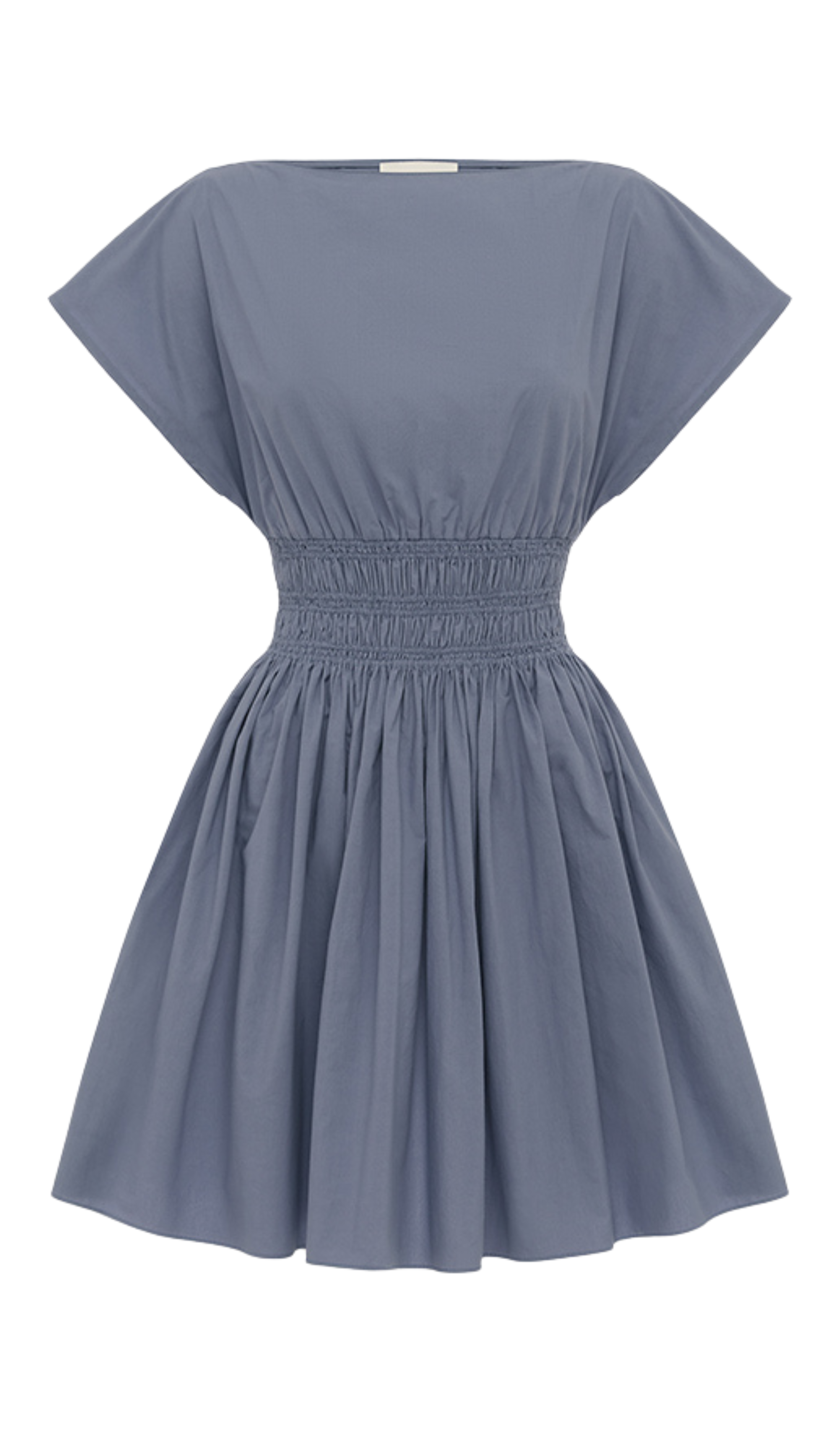 The Shirred Waist Mini Dress in Steel by Matteau.