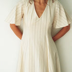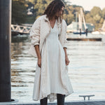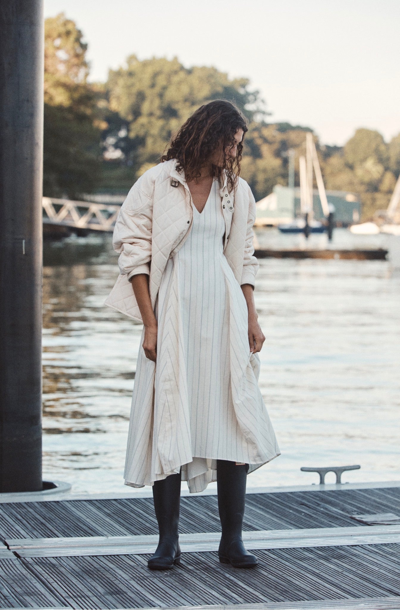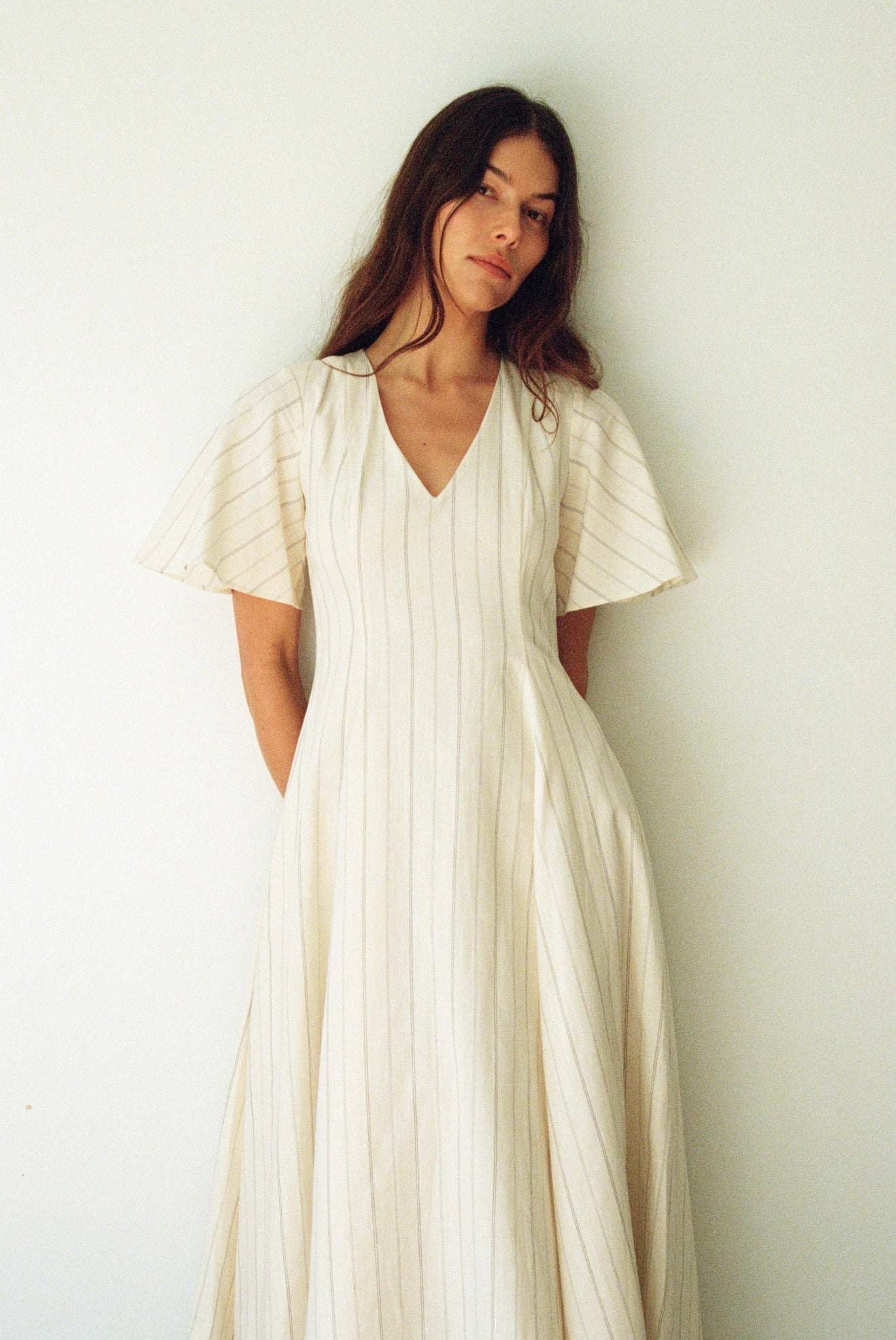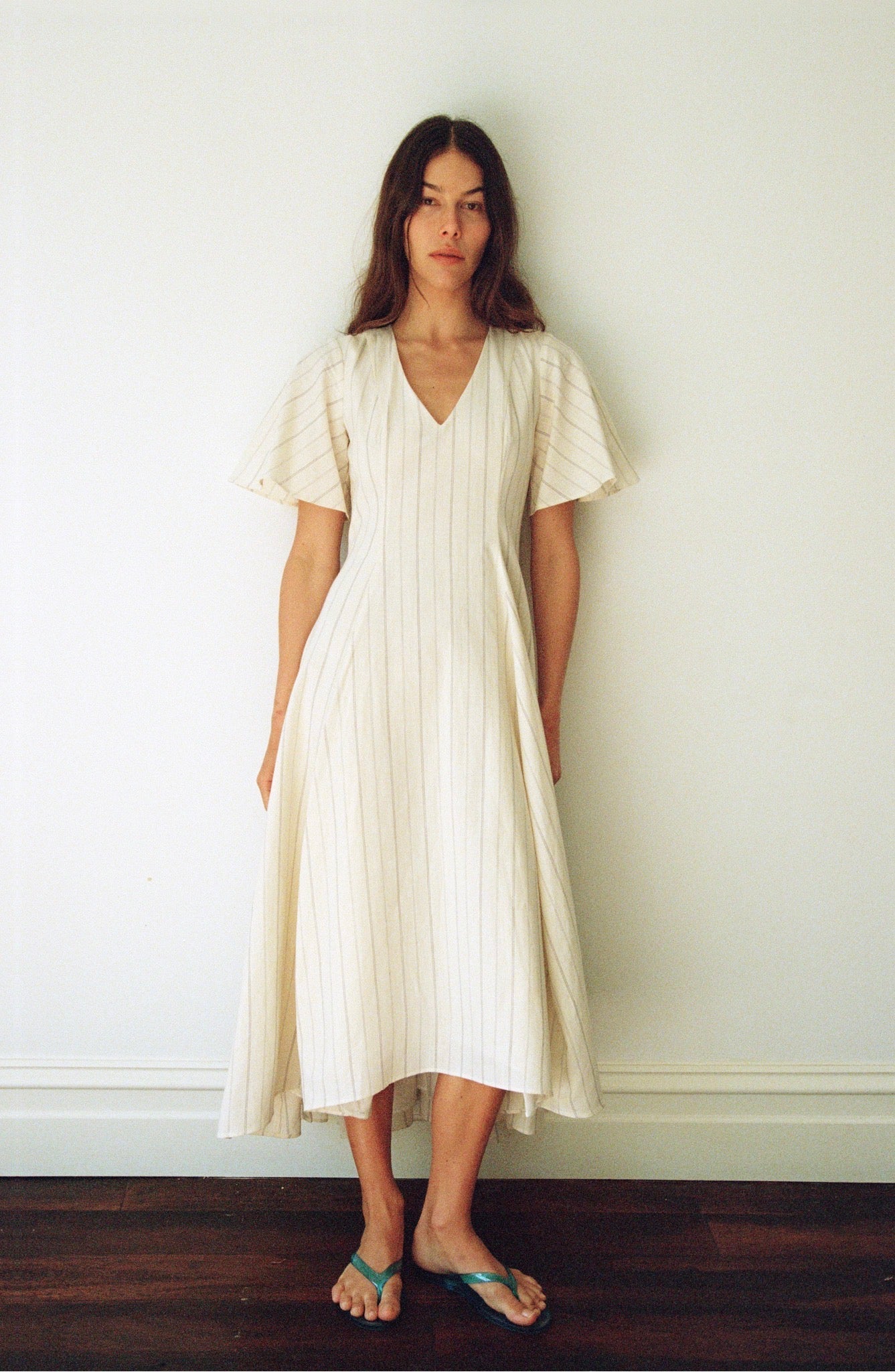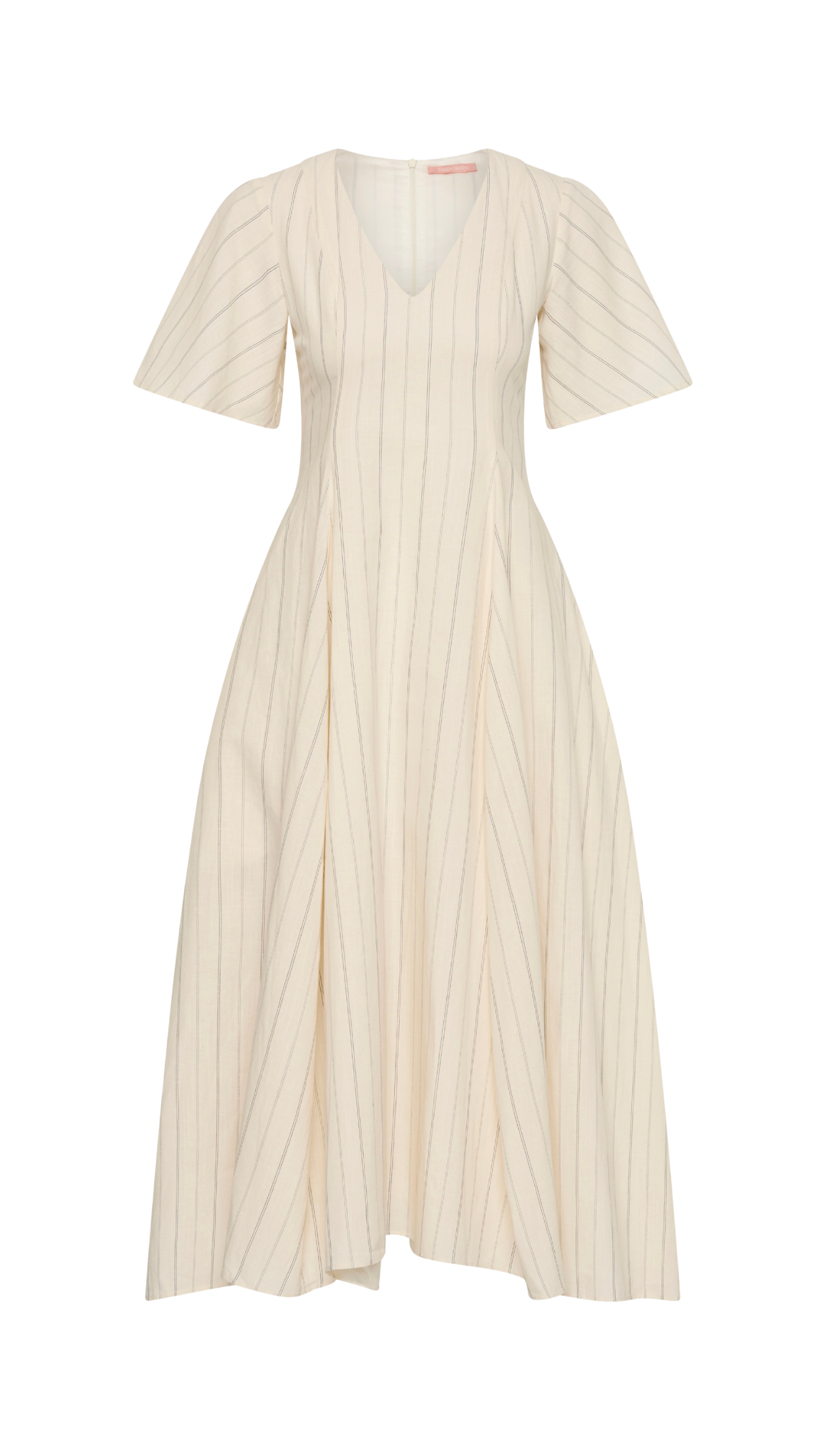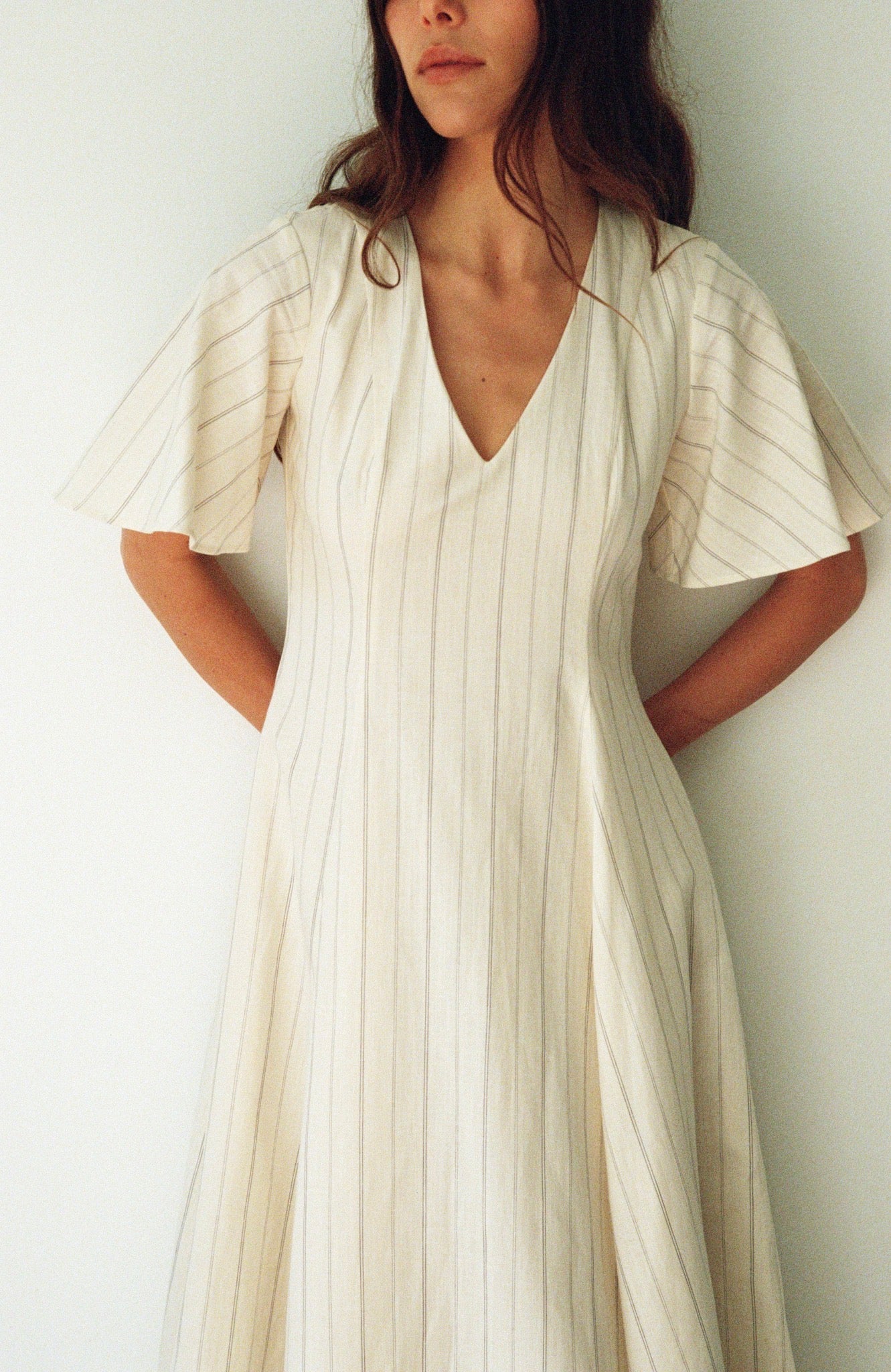 Cut in a breathable cotton-linen blend and fully lined for practicality, this dress is designed to balance comfort and elegance. The soft panelling creates structure to flatter the figure. Model is 173cm wearing size S/8.