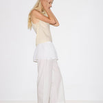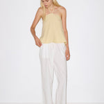 The Ease Pant by Deiji Studios in white combines comfort and style effortlessly. These ankle-length trousers feature a soft minimal elastic waistband and handy side seam pockets, offering practicality alongside a sleek, straight-leg silhouette. Crafted from 100% GOTS certified organic cotton poplin, they provide breathable softness ideal for lounging at home, relaxing in bed, or stepping out with a chic, understated look. Designed for ease and versatility, these pants elevate everyday wear with sustainable luxury. The model is 179cm tall, wears a size S, and typically fits an AU size 8.