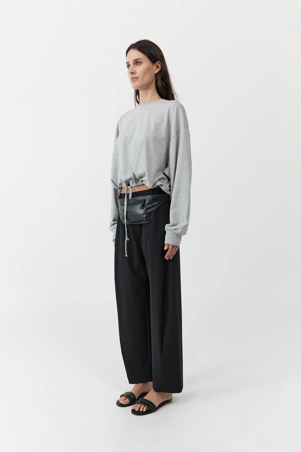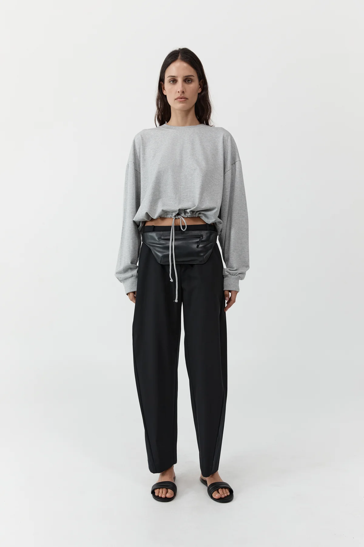 The Drawstring Long Sleeve Top in Light Grey Marle by St.Agni.