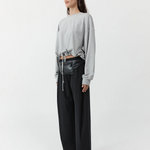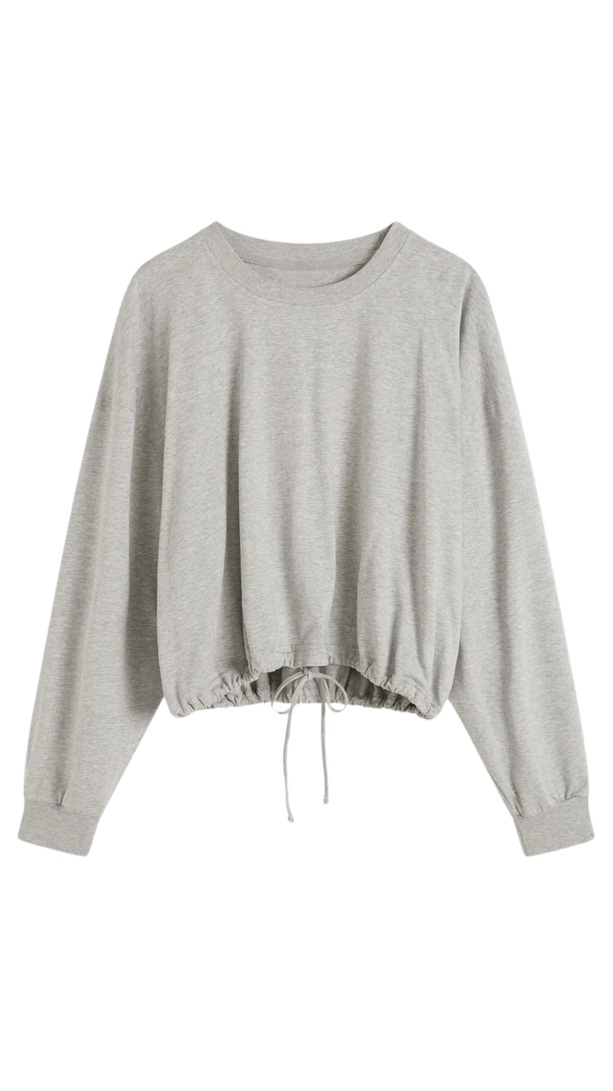 Drawstring Long Sleeve Top - Light Grey Marle