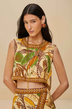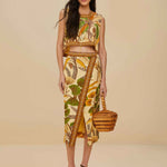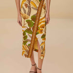 The Foliage Sketch Sand Midi Skirt by Farm Rio.