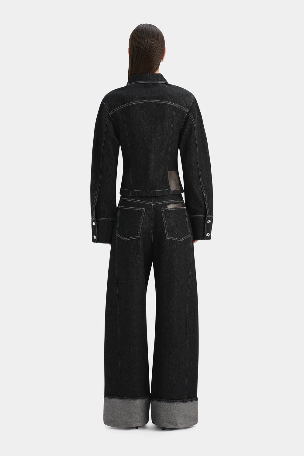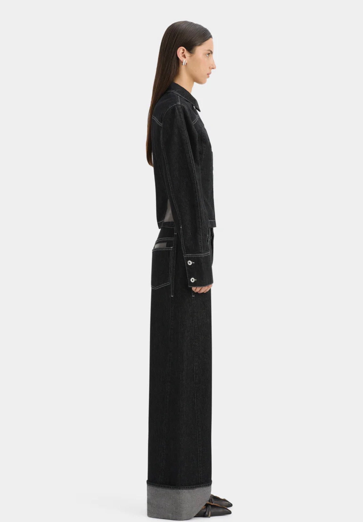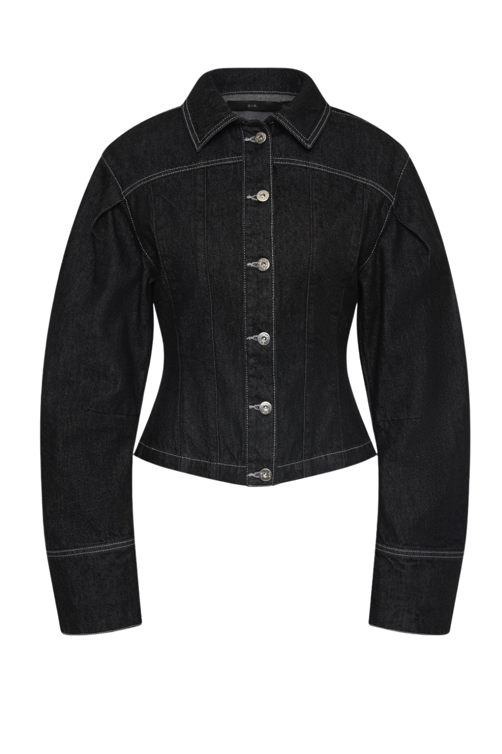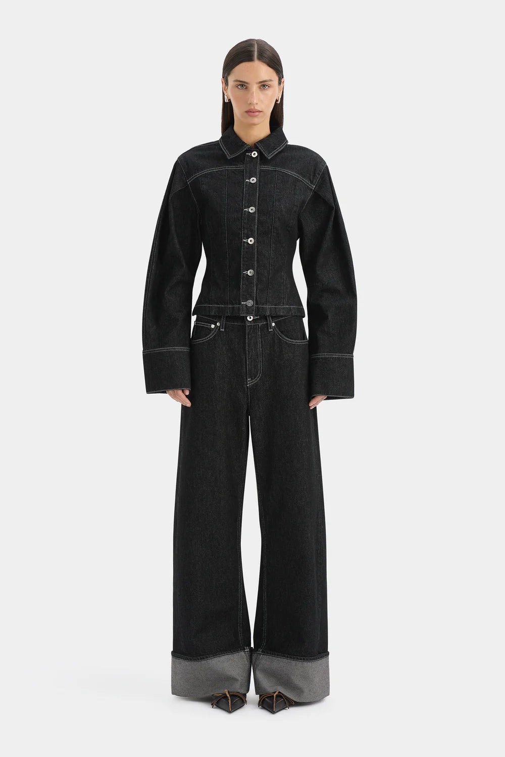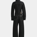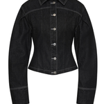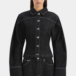 The Malou Jacket in Grey showcases a tailored silhouette influenced by Parisian design. Made from 100% organic cotton without any stretch, it boasts artistic cocoon sleeves, elegantly curved paneling with contrasting topstitching and refined silver accents. Team it with the Malou Cuffed Jean for a cohesive outfit.