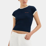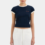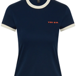 The Yes SIR. Fitted Tee in Midnight is a versatile addition to your casual wardrobe. Made from comfortable stretch cotton, it offers a flattering fit that moves with you. The tee features subtle contrast ivory bindings that add a stylish touch without overpowering the design. A small, minimal YES SIR. logo on the front keeps the look clean and modern. Perfect for off-duty days, this tee combines comfort and effortless style for everyday wear.