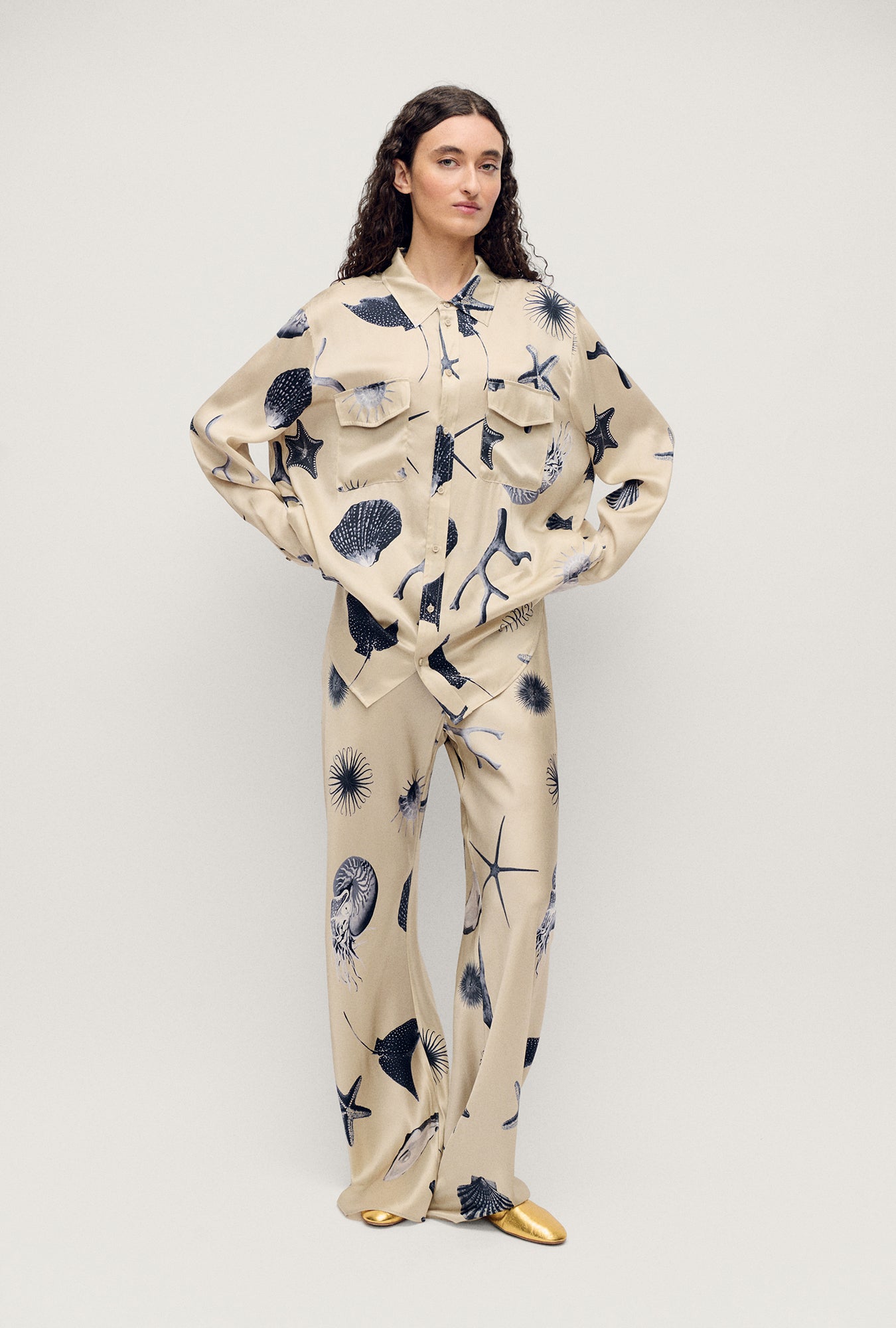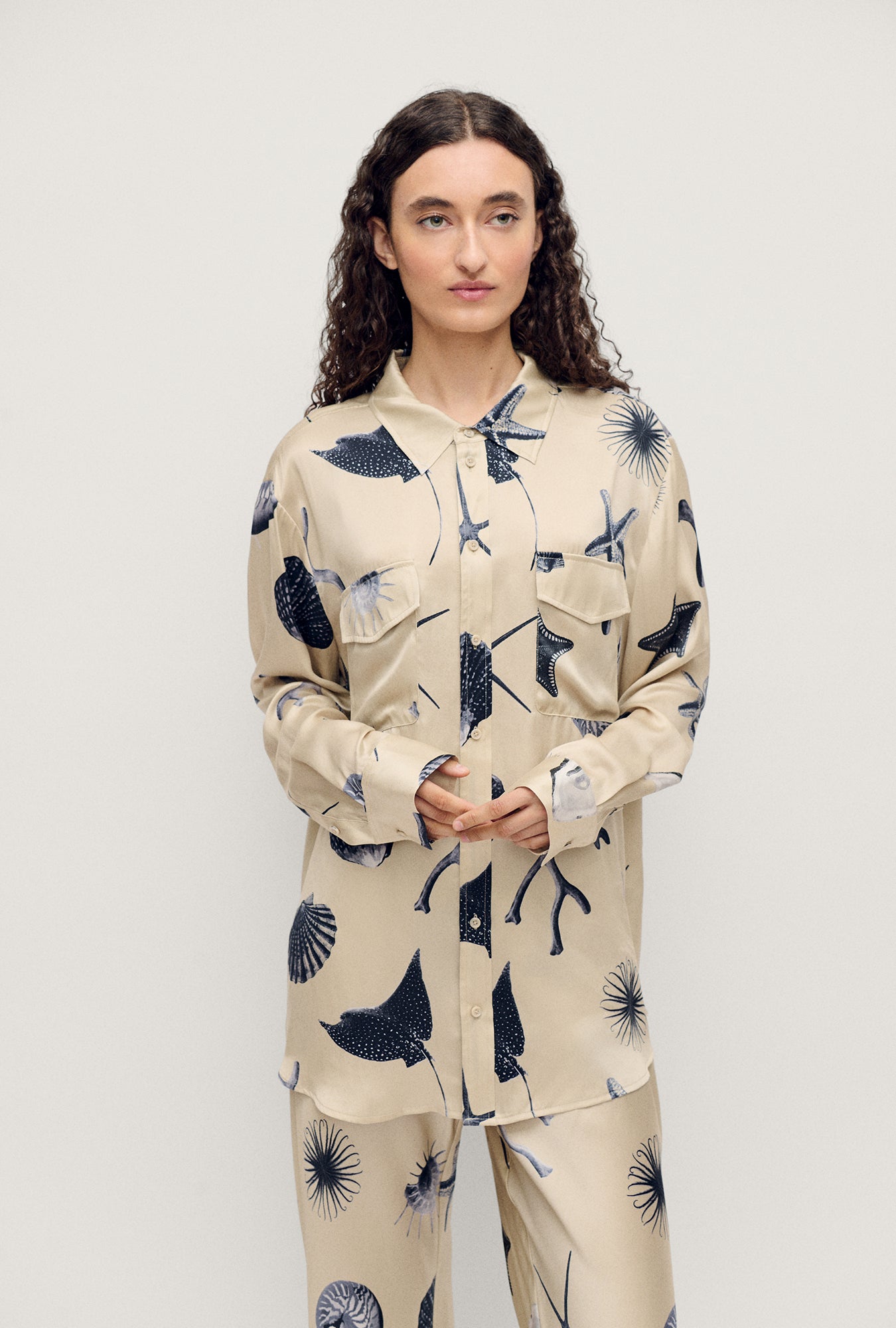 The Boyfriend Shirt in Seashells by Silk Laundry.