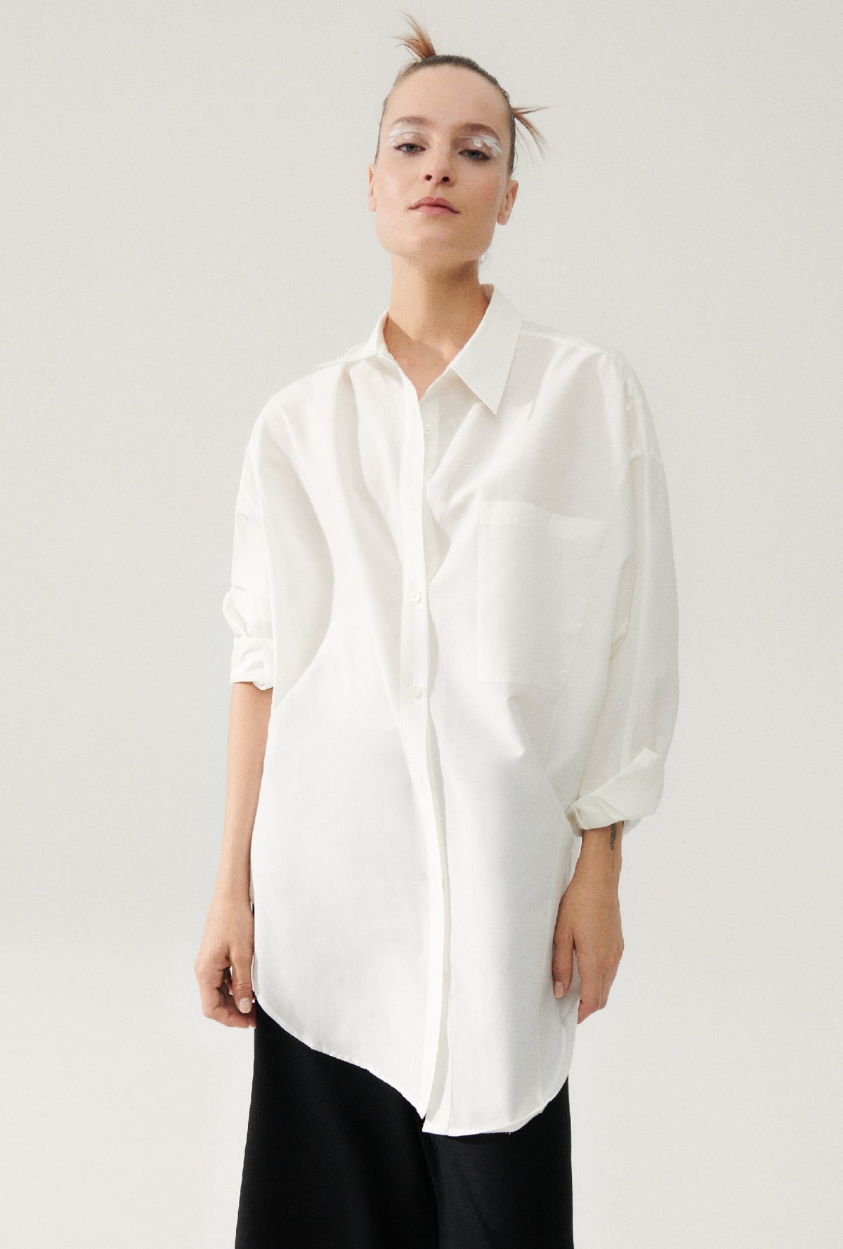 The Cotton Silk Round Shirt in White by Silk Laundry.