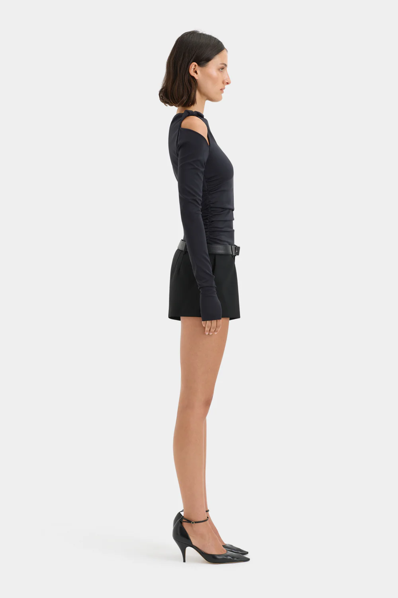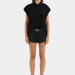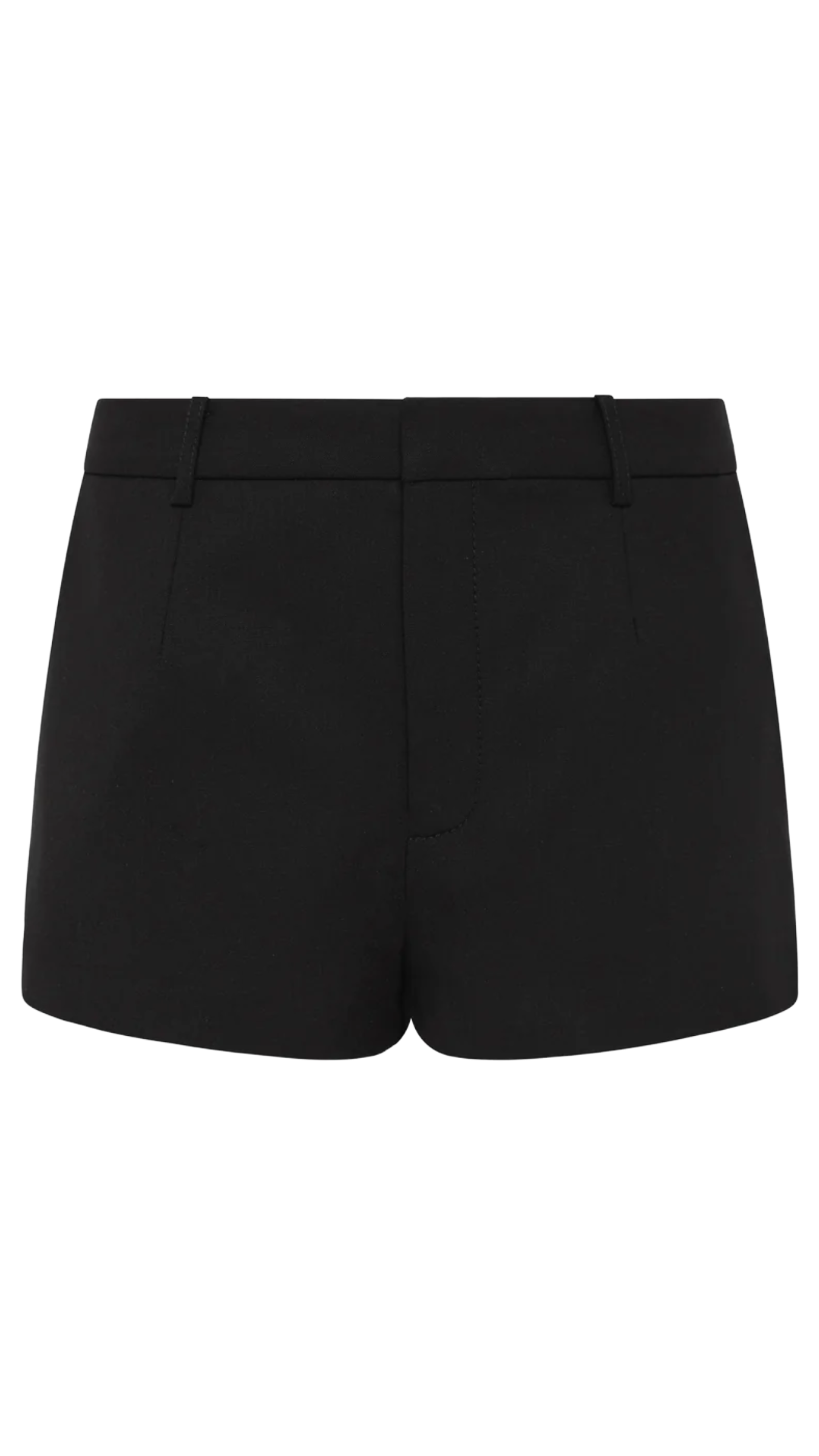 The Dylan Mini Short in Black offers a modern and versatile addition to your wardrobe. Made from a wool-blend suiting fabric, it provides a smooth finish with a comfortable low to mid rise fit. Its micro-length silhouette gives a fresh, contemporary look, while the relaxed shape ensures ease of movement. Practical side pockets add convenience, and belt loops allow you to customize the style with your favorite accessories. Perfect for both casual and dressier occasions, this short combines style and comfort effortlessly.