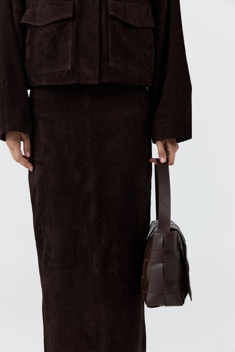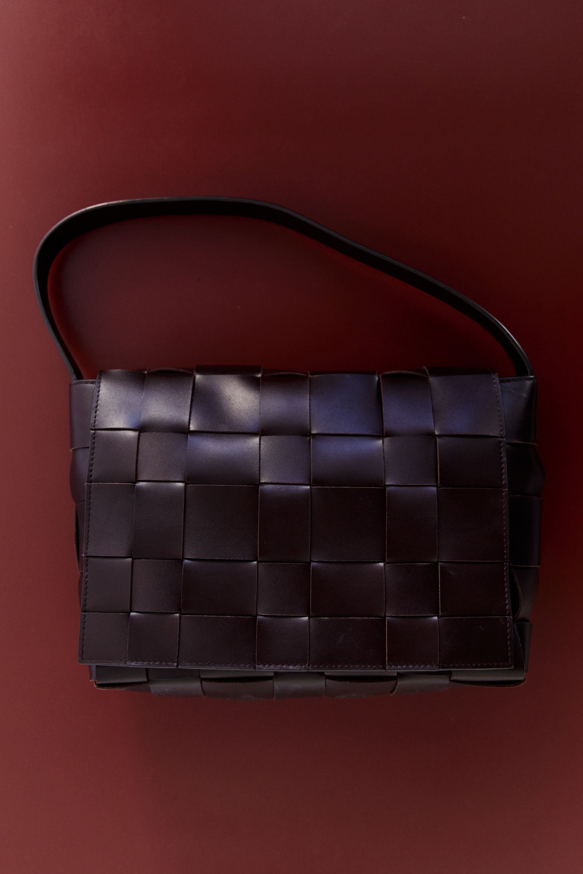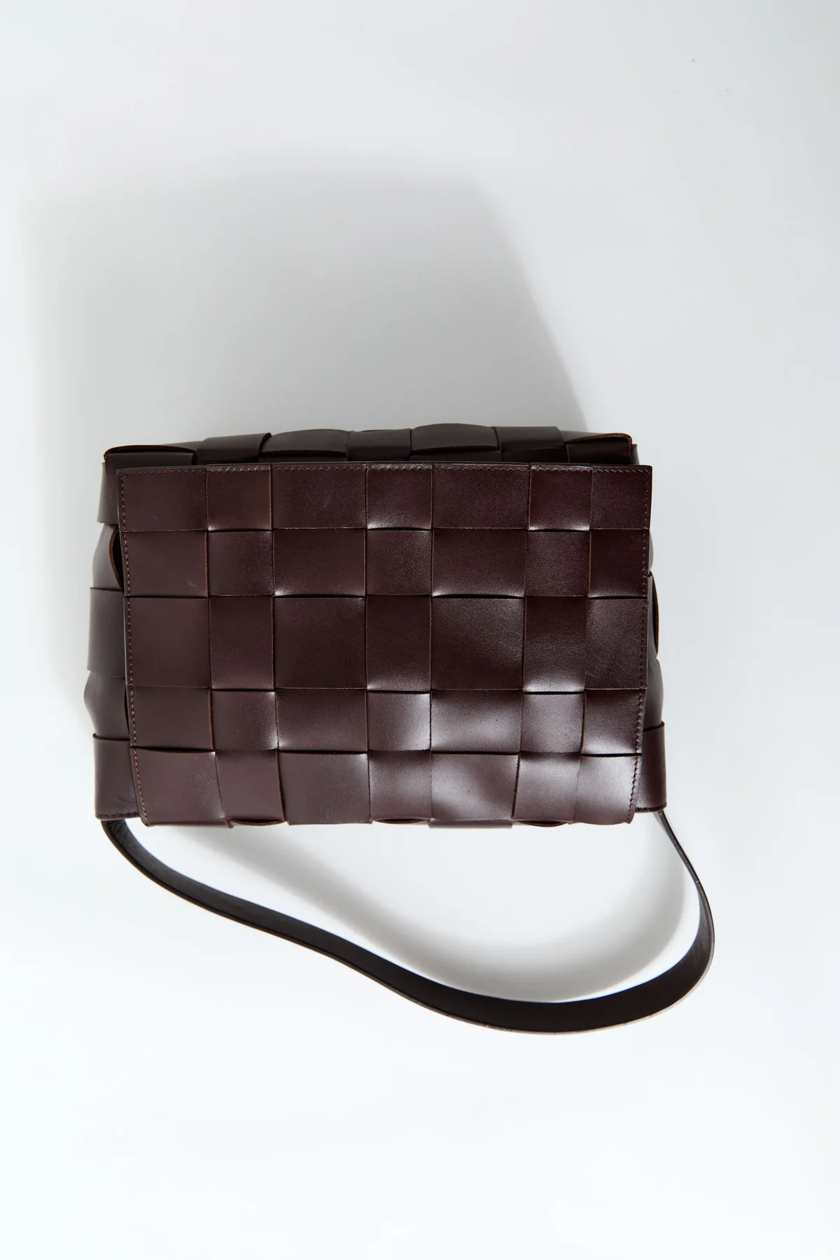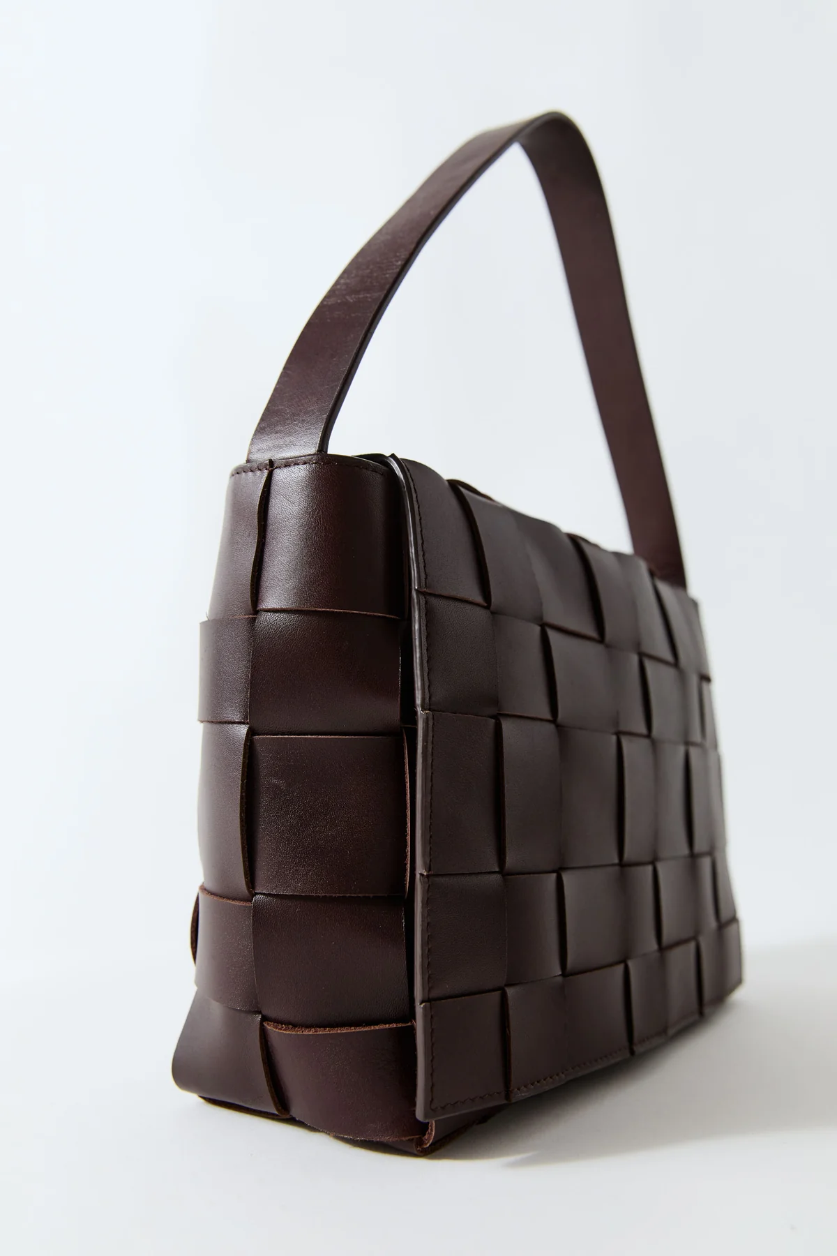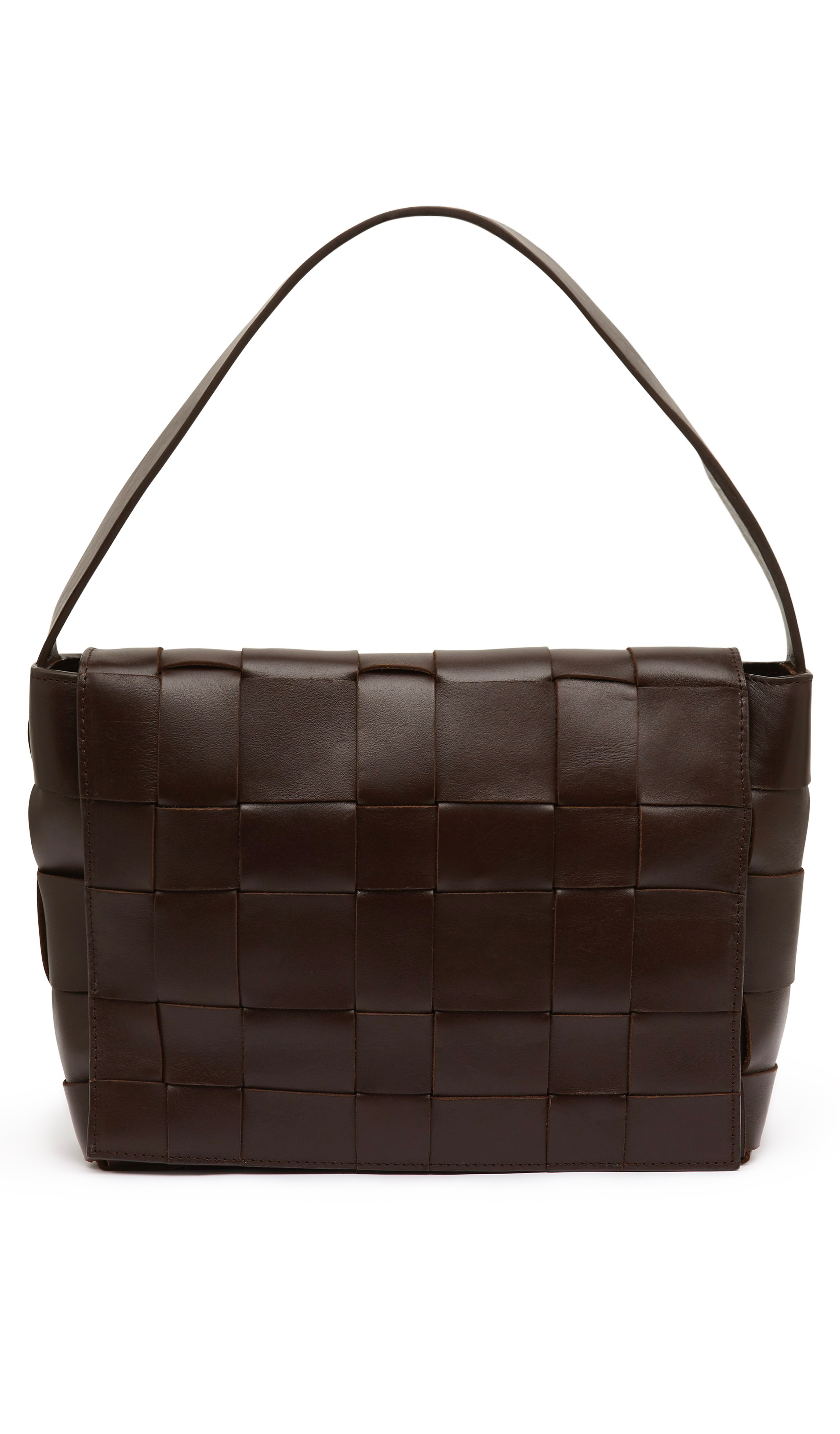 The Woven Envelope Mini Tote in Chocolate by St.Agni.
