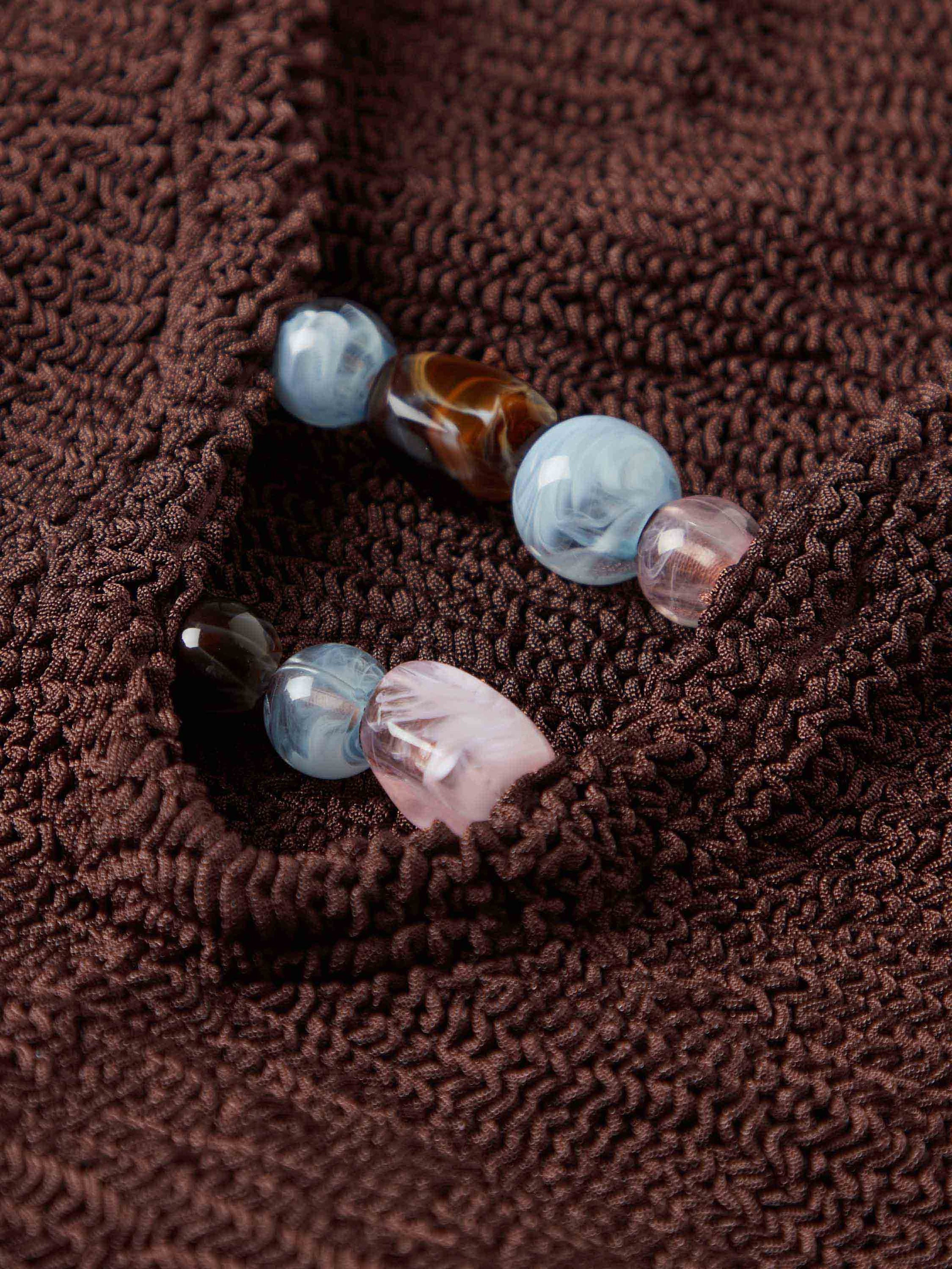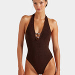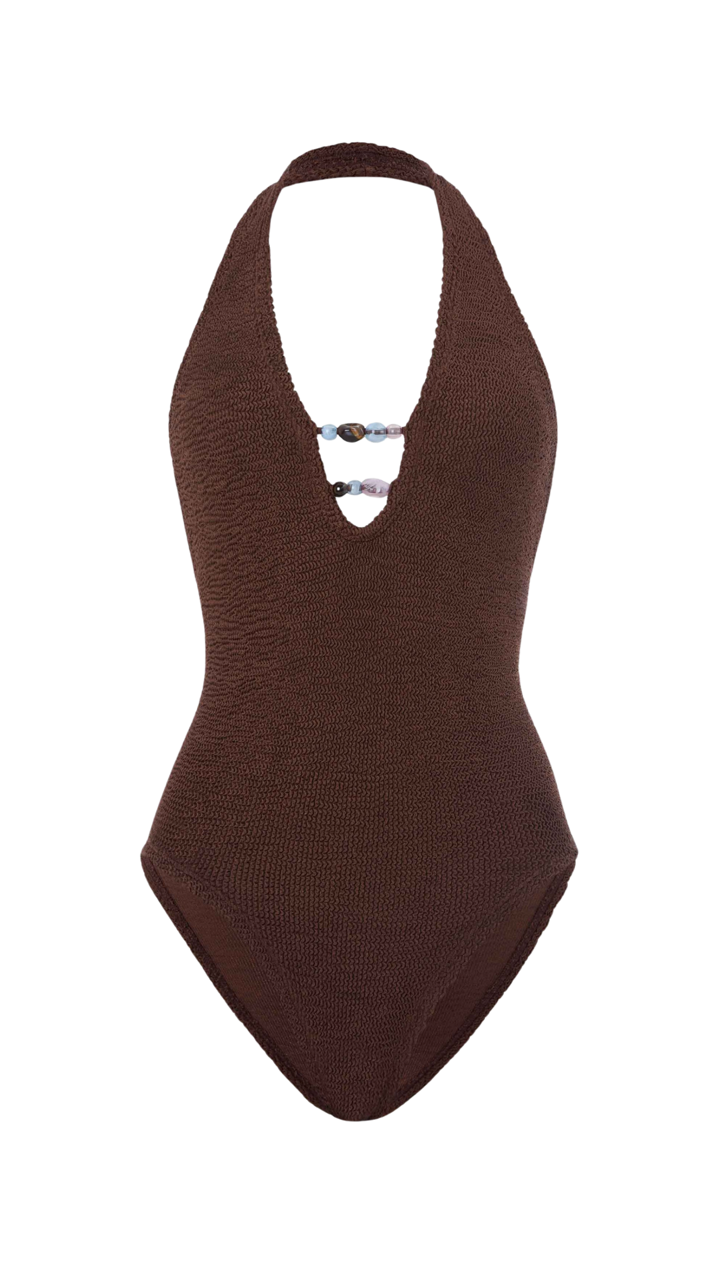 The Adriana Beaded Swim in Metallic Chocolate by Hunza G.