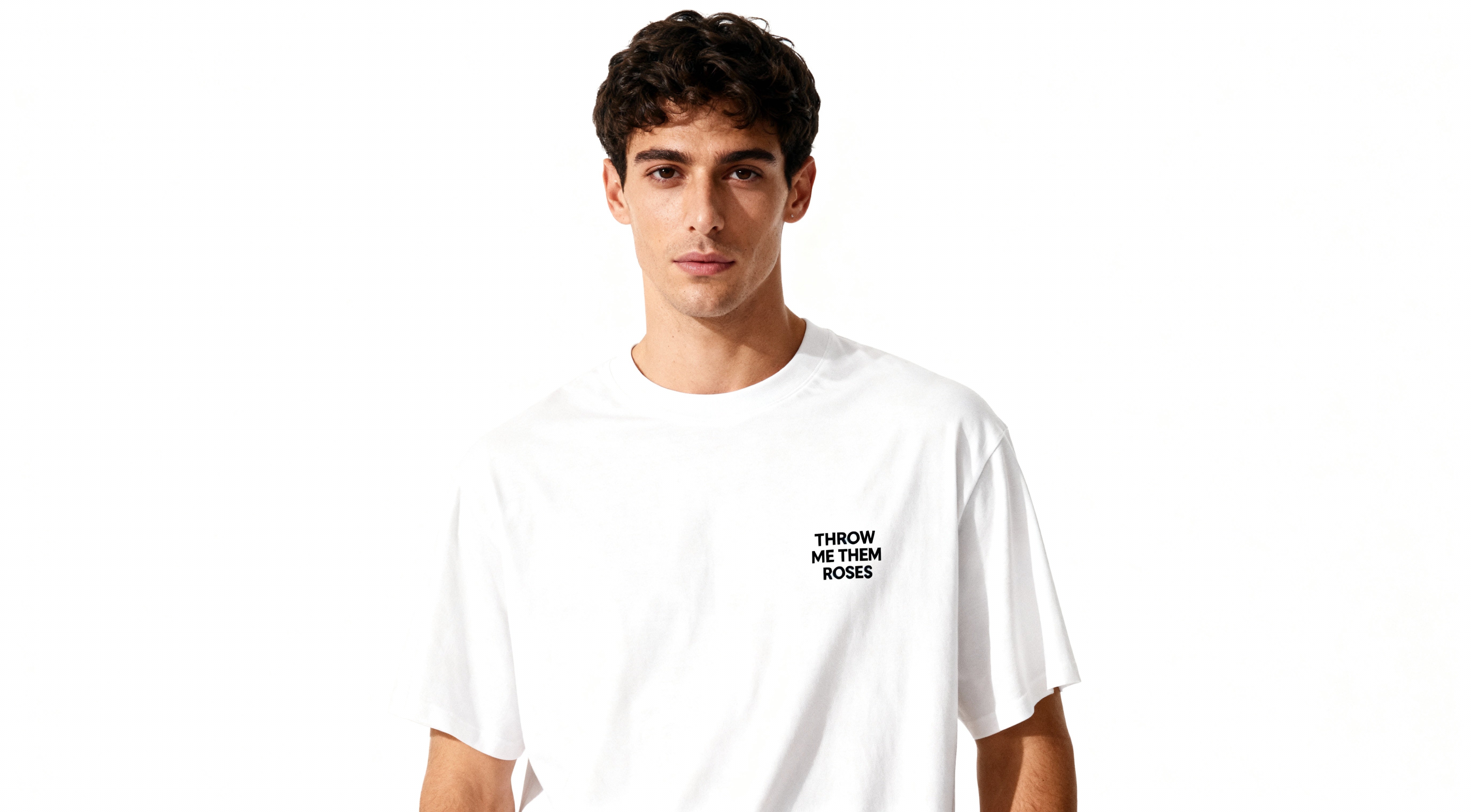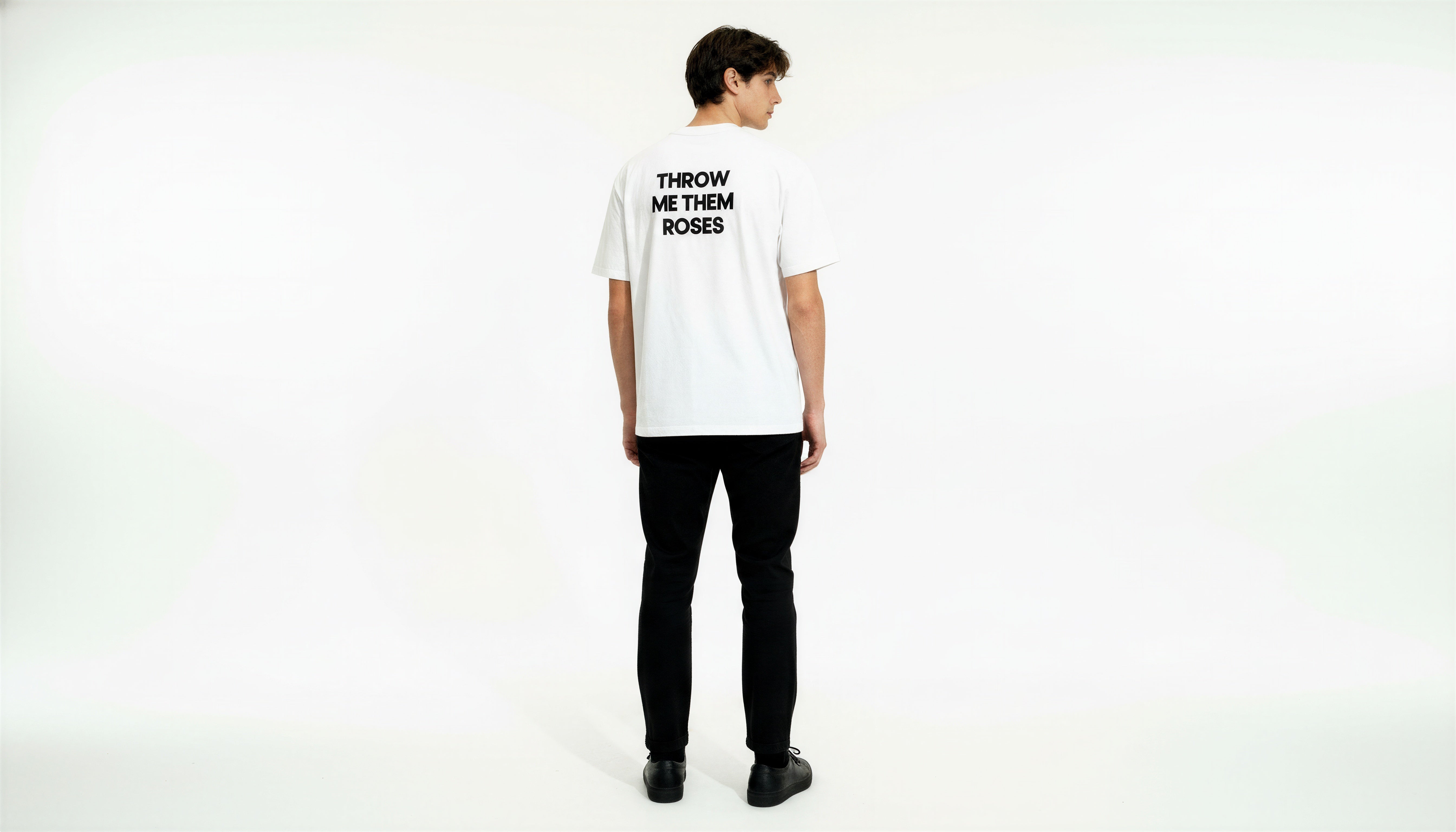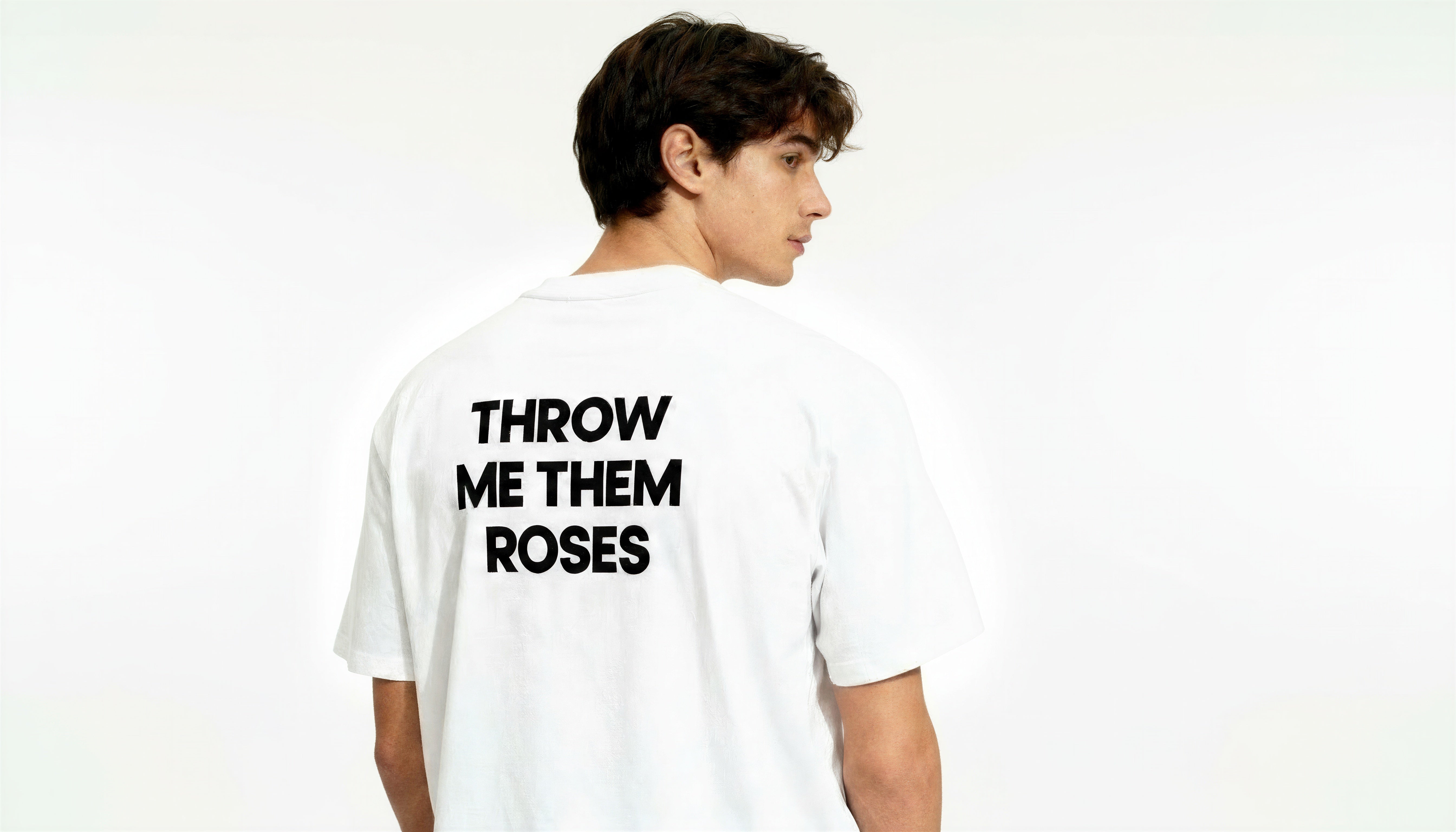 Crafted from 260 GSM 100% cotton, this premium white tee delivers structure, comfort, and attitude. Featuring the 'THROW ME THEM ROSES’ slogan. screen printed on both the front and back.