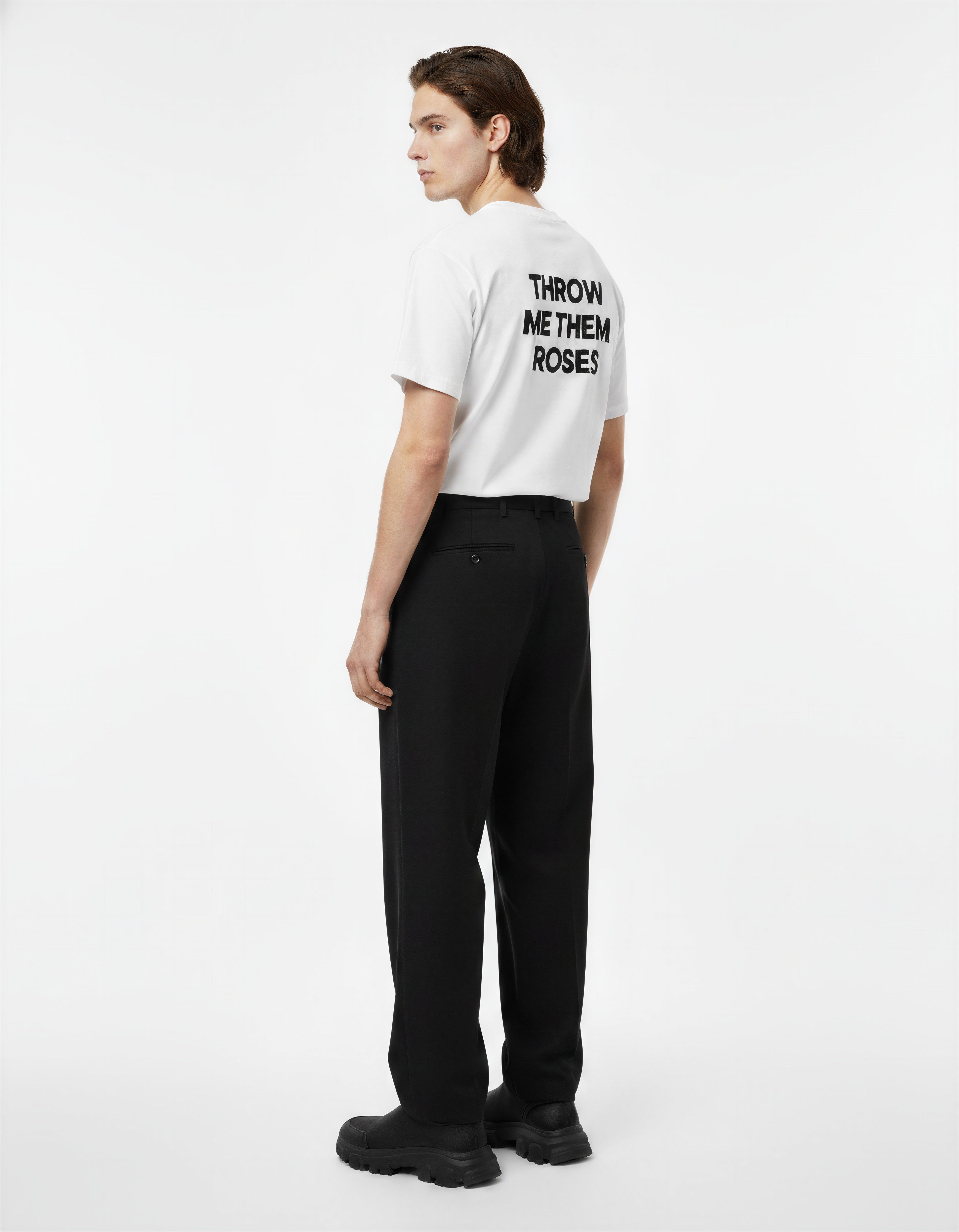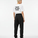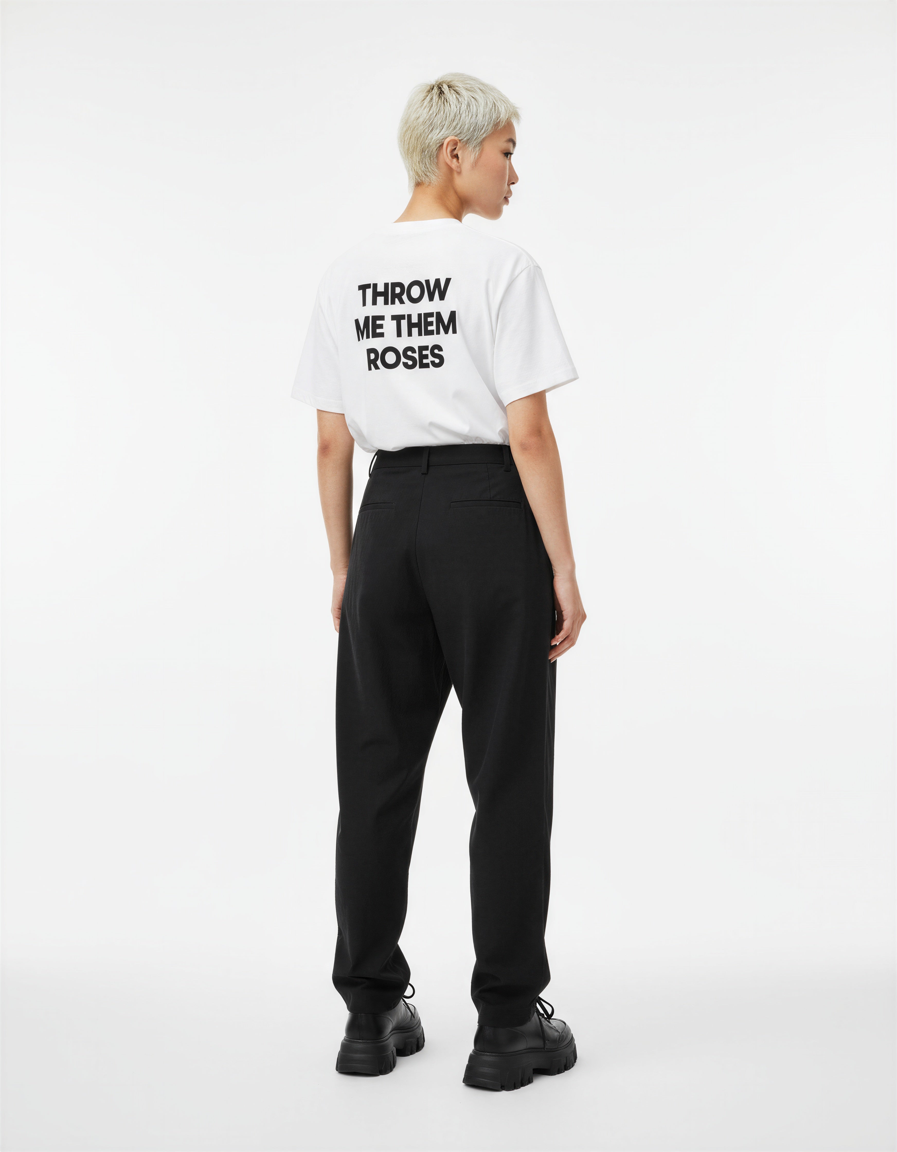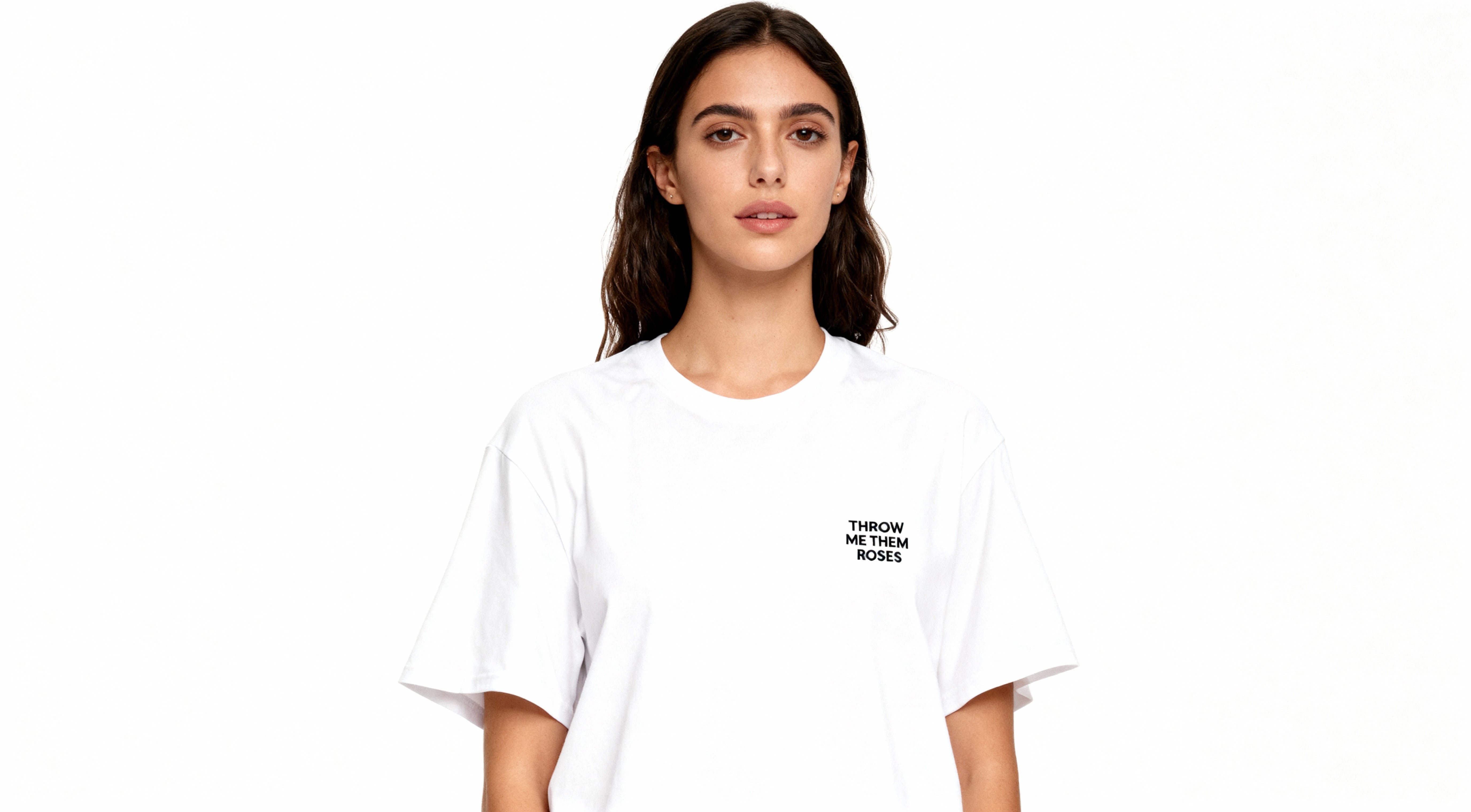 Crafted from 260 GSM 100% cotton, this premium white tee delivers structure, comfort, and attitude. Featuring the 'THROW ME THEM ROSES’ slogan. screen printed on both the front and back.