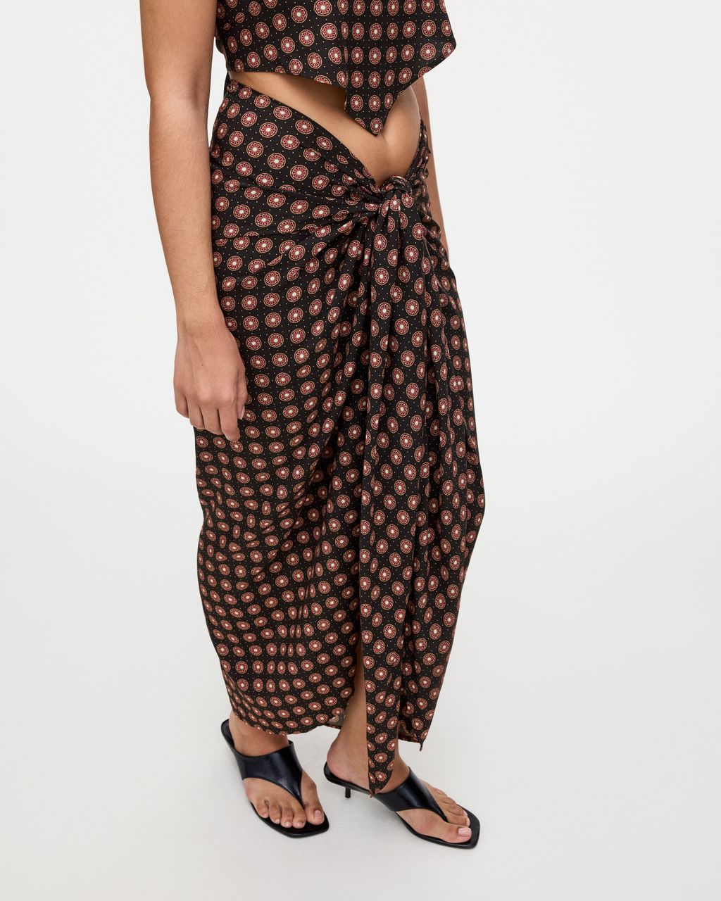 The Coffee Lumo Cyan sarong wraps elegantly around the waist, featuring a dotted pattern that evokes vintage charm. Tailored from an airy viscose fabric with a silky soft feel. Ideal for warm-weather lounging, with a self-tie front and a back slit. Slip on over your favourite swimwear.