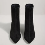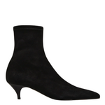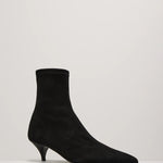 Crafted from stretch leather, the Ophelia Boot offers a sleek, contoured fit. Its pointed toe and delicate kitten heel exude timeless elegance, while the 6cm stacked leather fluted heel adds refined height. Easy to slip on, this boot features a leather sole for a polished finish. Made in Italy. Premium Italian suede leather makes up the upper, insole, and sole of this style. With a rubber heel cap, these leather boots will naturally wear over time.