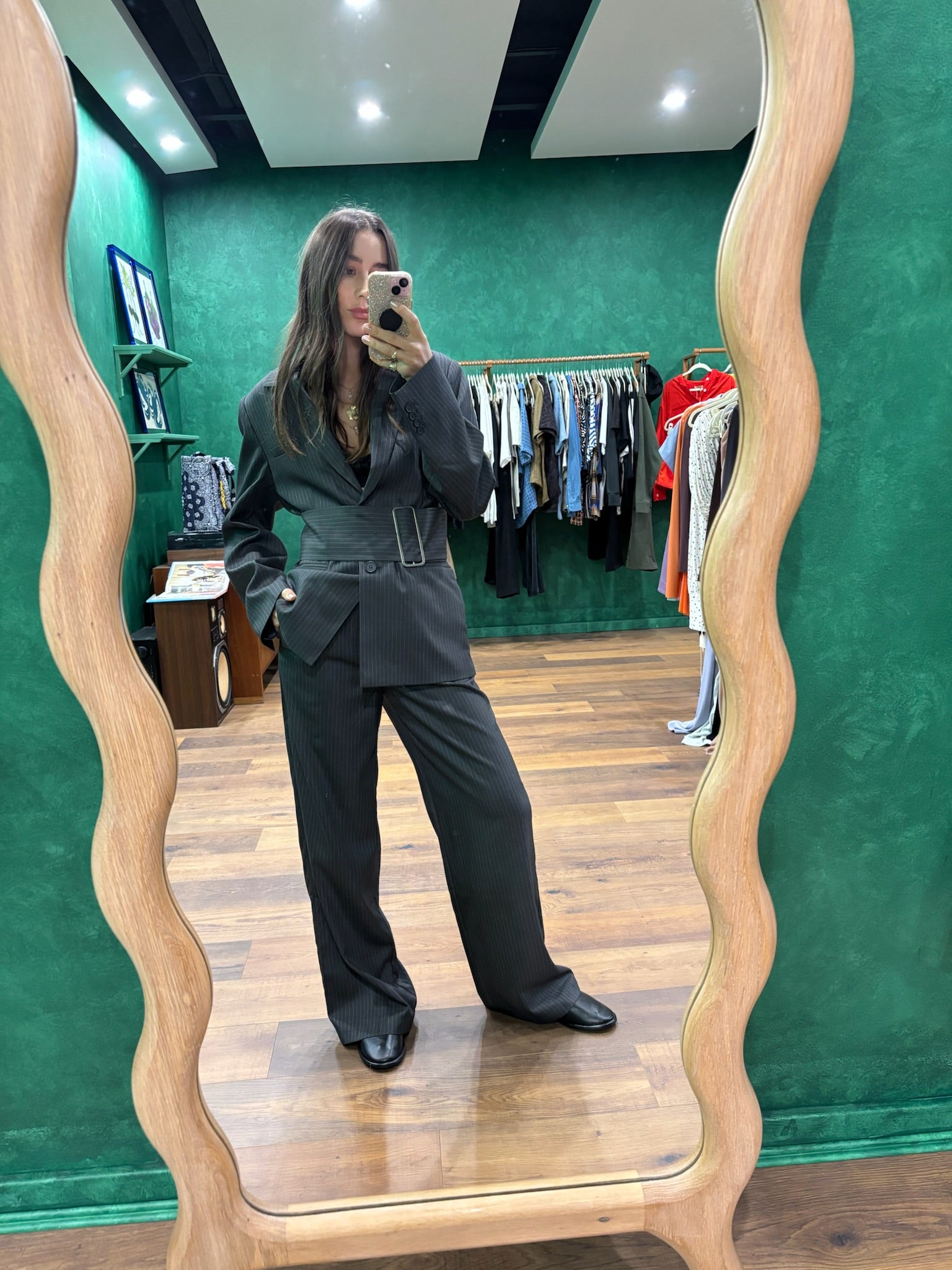 Margot Blazer - Grey Pinstripe