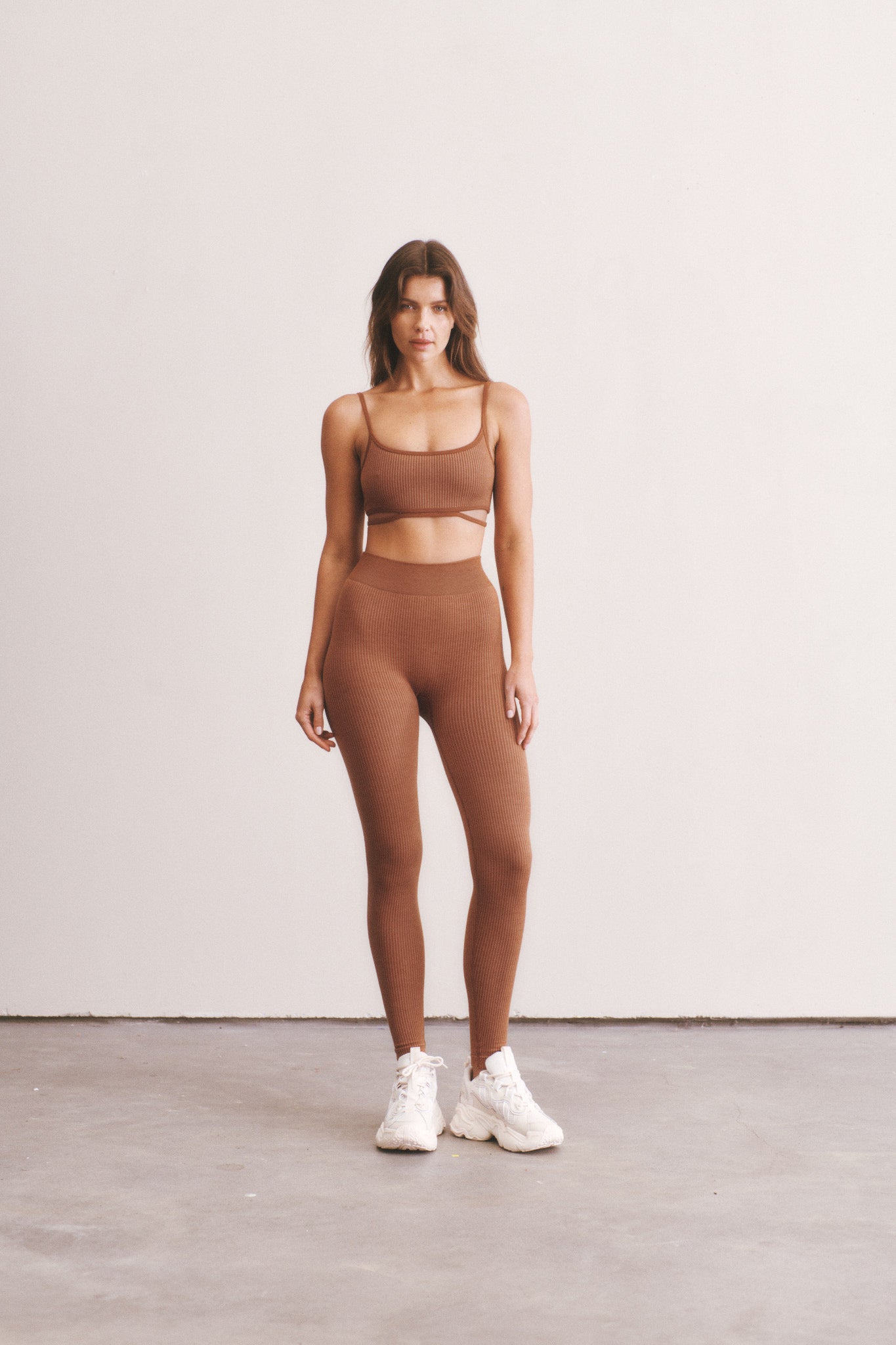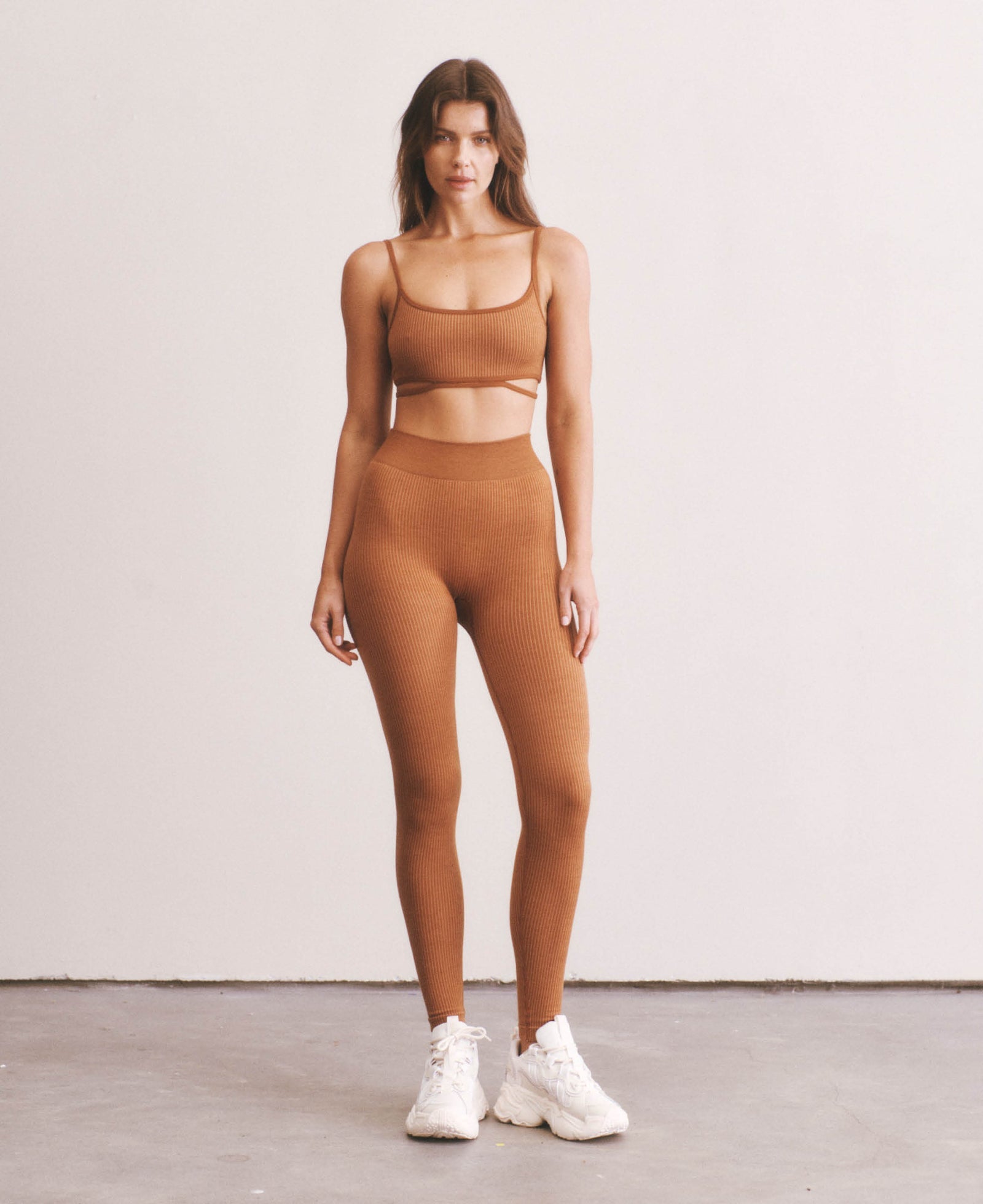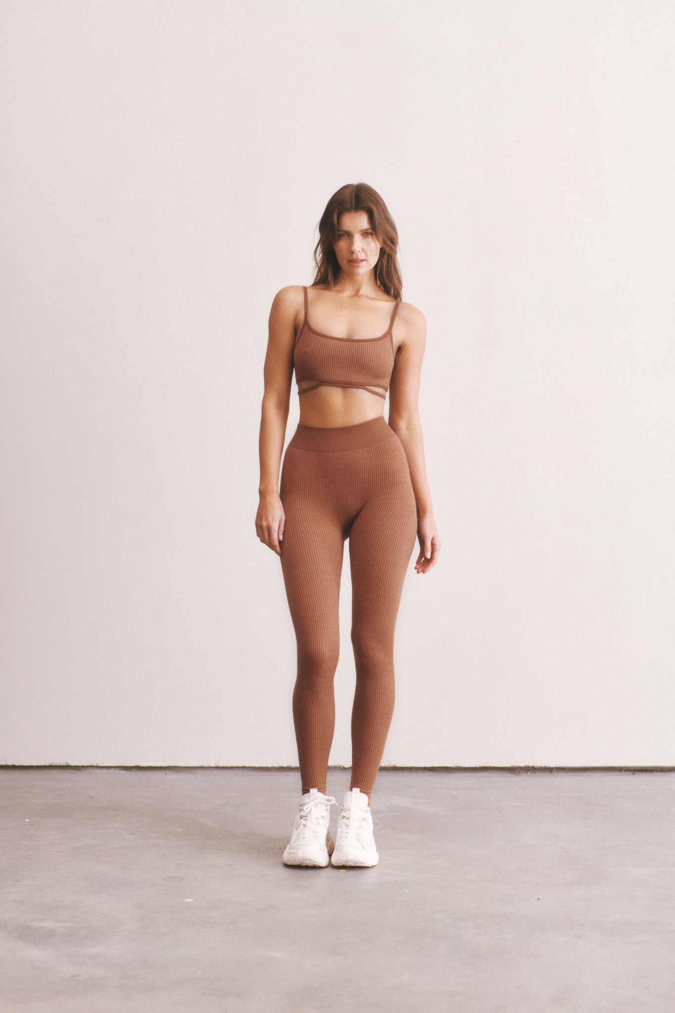 These full-length leggings are crafted from superfine Merino wool with a seamless knit design and a mid to high waist. They offer gentle compression and support while remaining breathable and soft, feeling like a second skin. The two-tone ribbed fabric includes a double-layer waistband with a contrasting color and the Nagnata logo on the back.