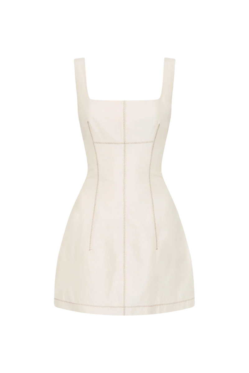 The Emilia Corset Mini Dress by SIR is a feminine style crafted from a textured linen viscose fabrication in a natural hue. Designed for a close fit, it features a square neckline, wide shoulder straps, panelling through the body and defined with contrast topstitching throughout for a modern finish.