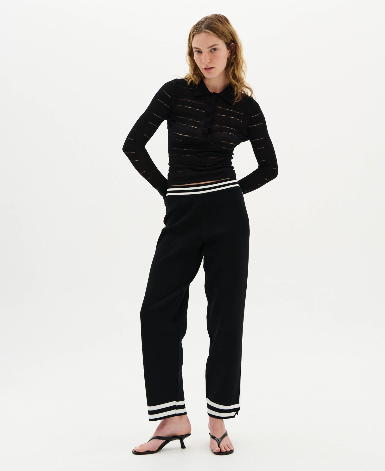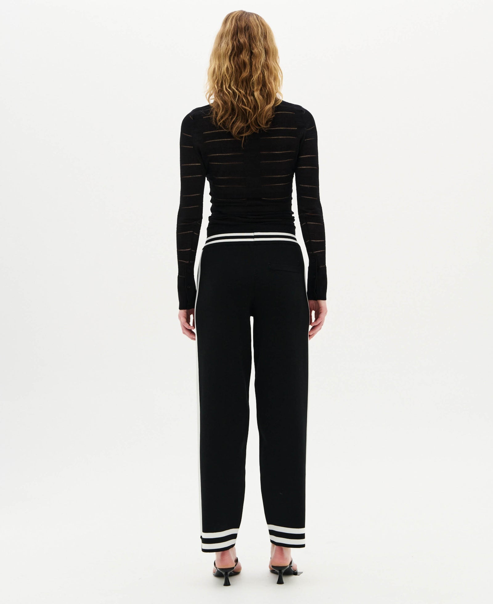 - Encased striped elastic rib waistband