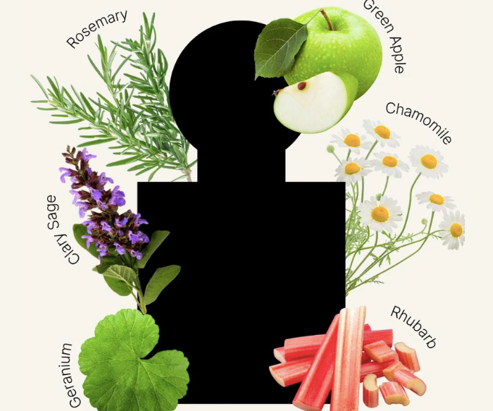 Top Notes: Green Apple (Upcycled), Rhubarb, Basil (Egypt), Rosemary (North Africa), Bergamot (Italy), Petitgrain (Paraguay)