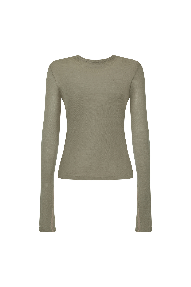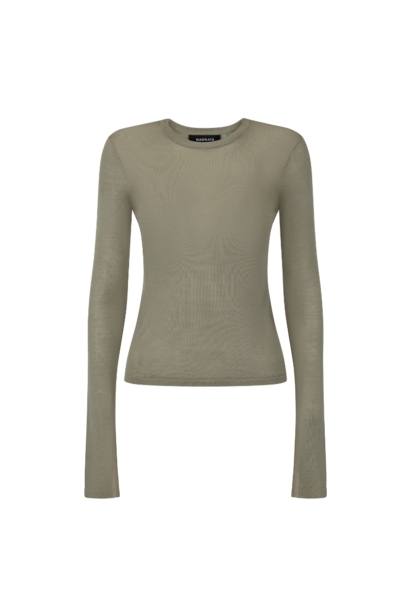 Sheer Essentias Long Sleeve Top in Taupe by Nagnata