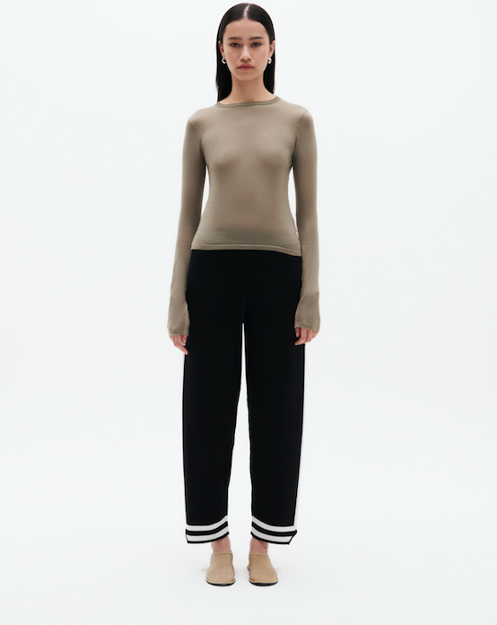 Slim fit long-sleeve top crafted from lightweight sheer knit fabric, offering a comfortable and breathable feel. Made using fully-fashioned knitwear techniques for a precise fit and high-quality finish. Constructed with GOTS organic cotton, ensuring sustainability and eco-friendly production practices. Available in sizes XS, S, M and L.