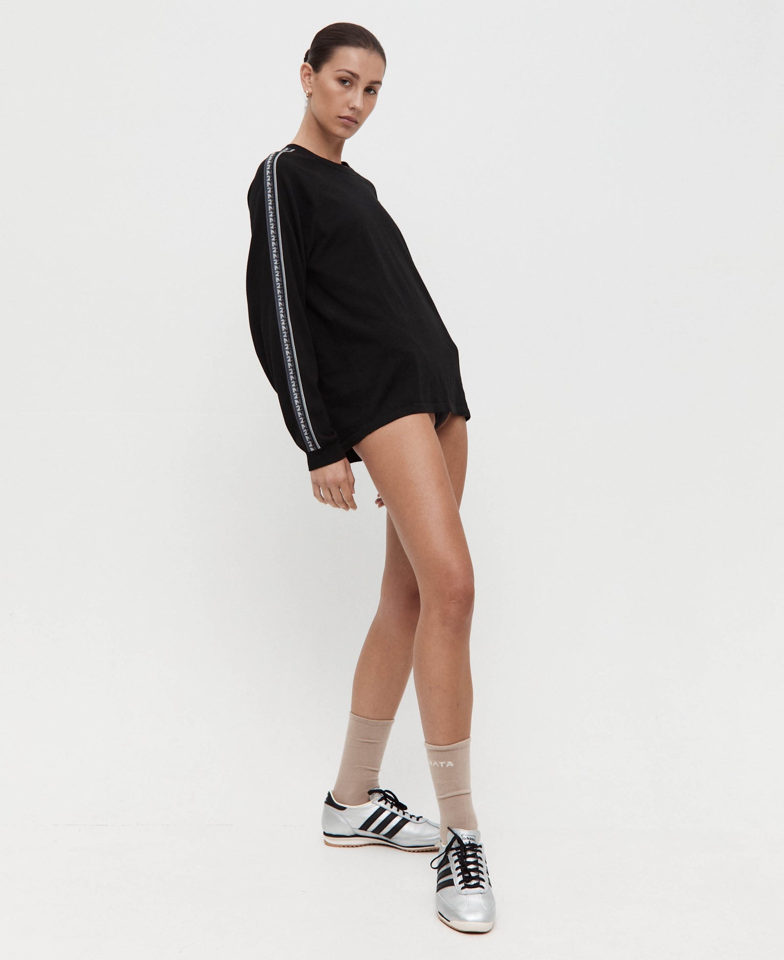 The Symbol Jersey is a comfortable, casual version of the classic long sleeve. It’s made from midweight fabric and has ribbed edges on the neckline, cuffs, and hem. The raglan sleeves are decorated with custom Nagnata recycled polyester logo tape.