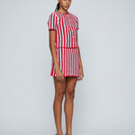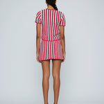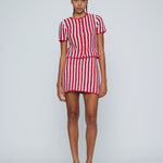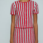 Zig Zag Crochet Skirt in Honeydew/Red by Wynn Hamlyn.