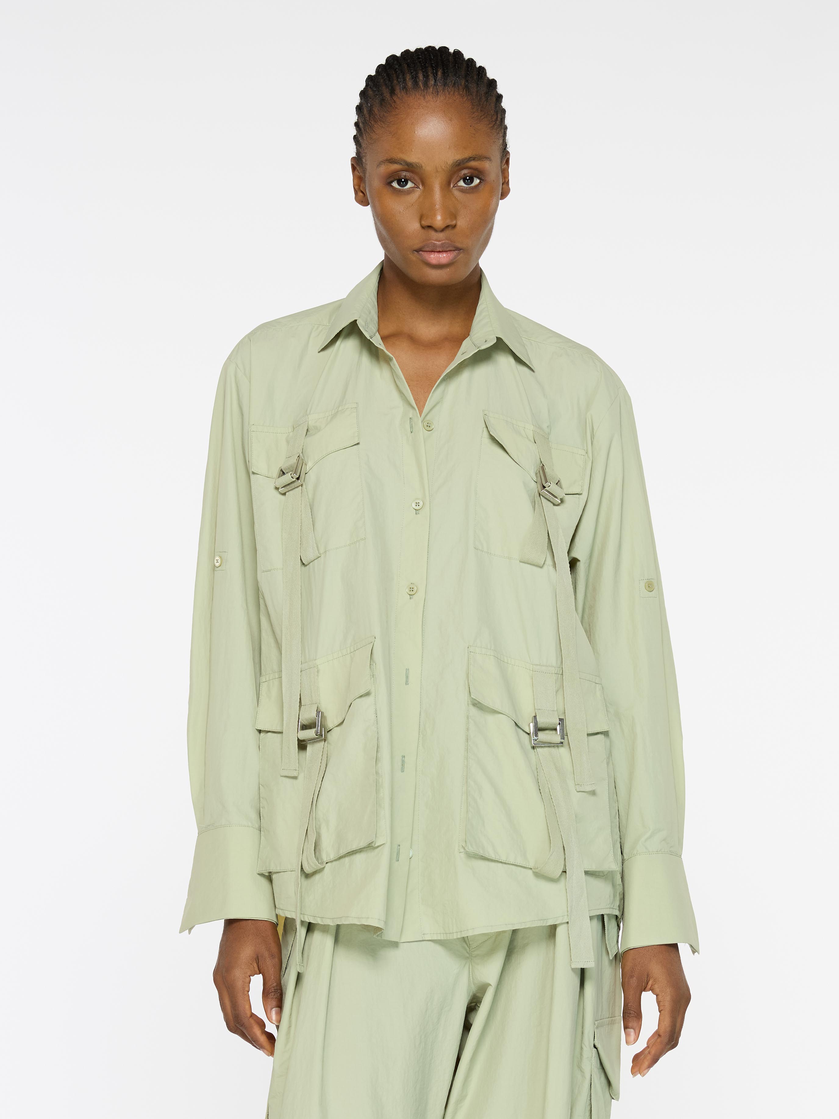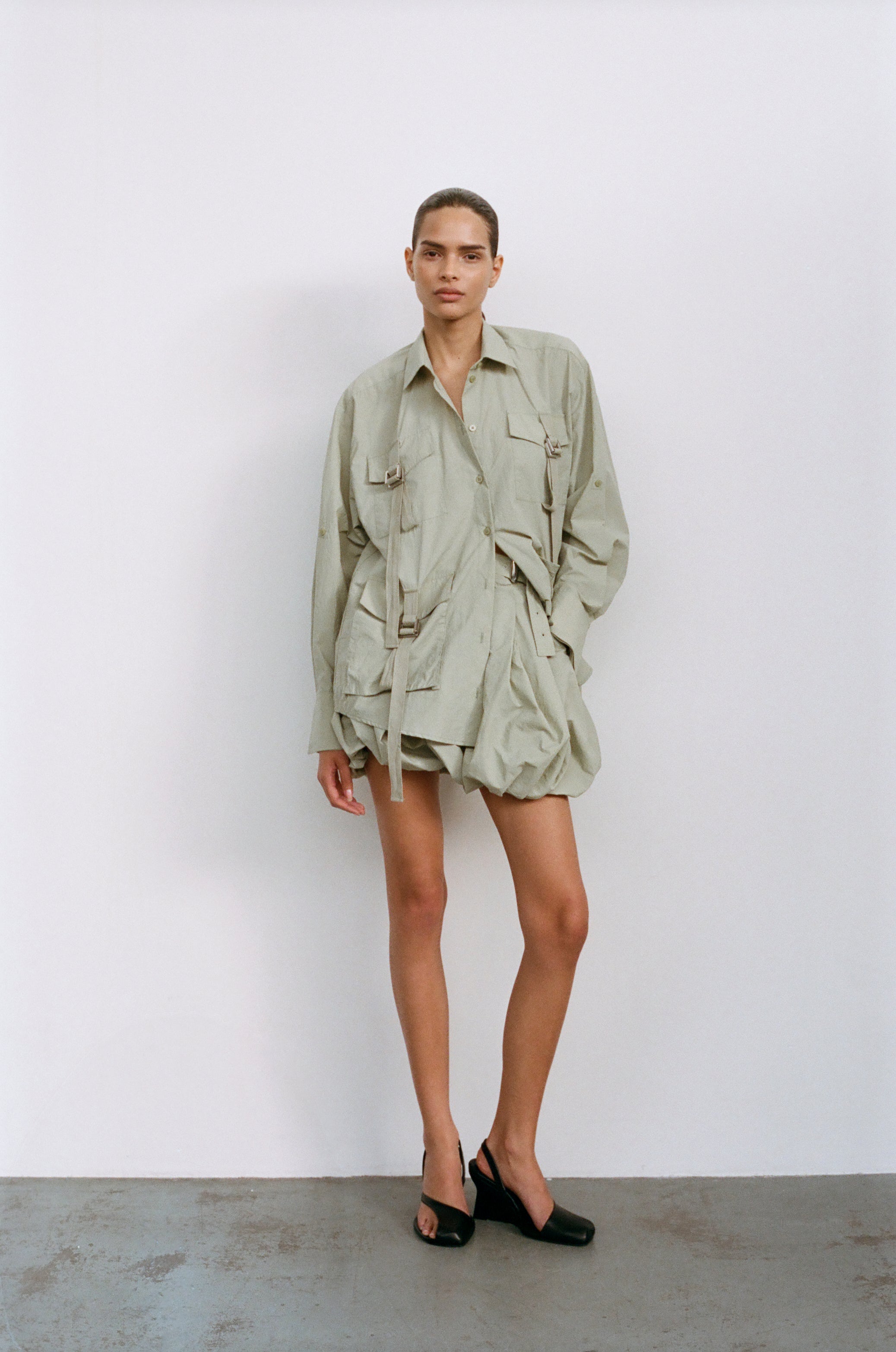 The Melissa Shirt in Dune is crafted from signature Crunchy Cotton fabric. This relaxed, oversized shirt features multiple pockets and utilitarian details, while a classic collar and subtle tailoring add a refined touch. A versatile wardrobe essential.