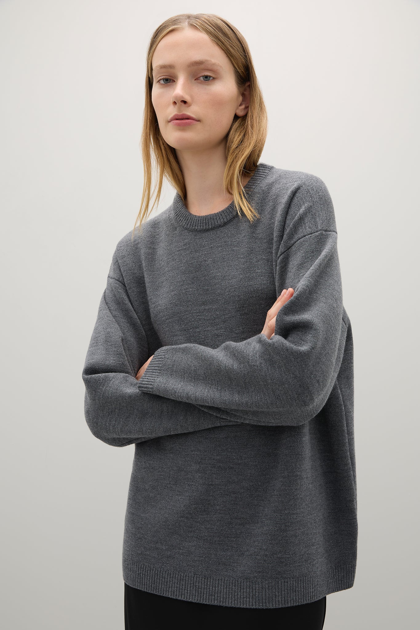 Reid Crew Knit - Mid Grey Melange