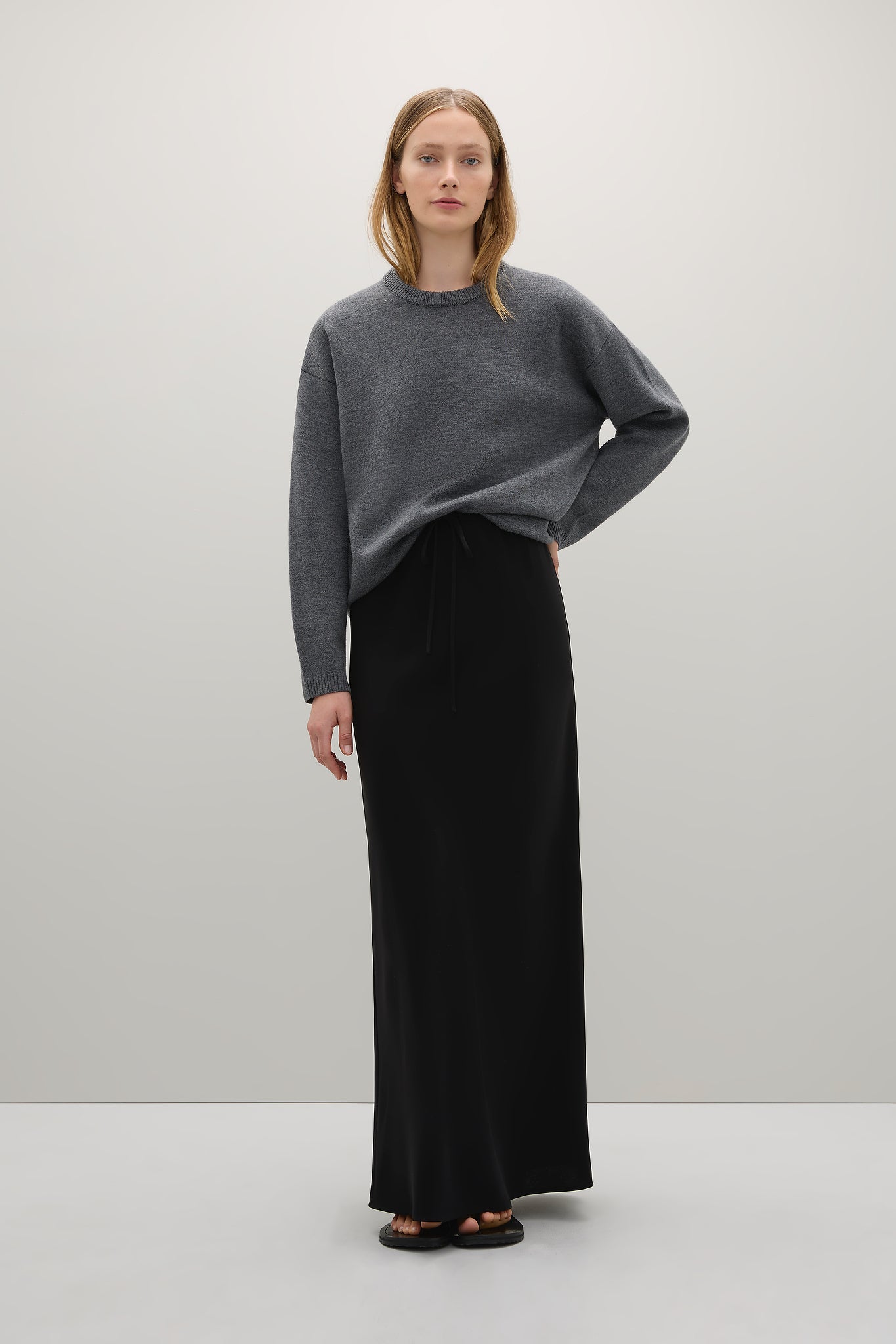 The Reid Crew Knit in Mid Grey Melange by A.Emery.