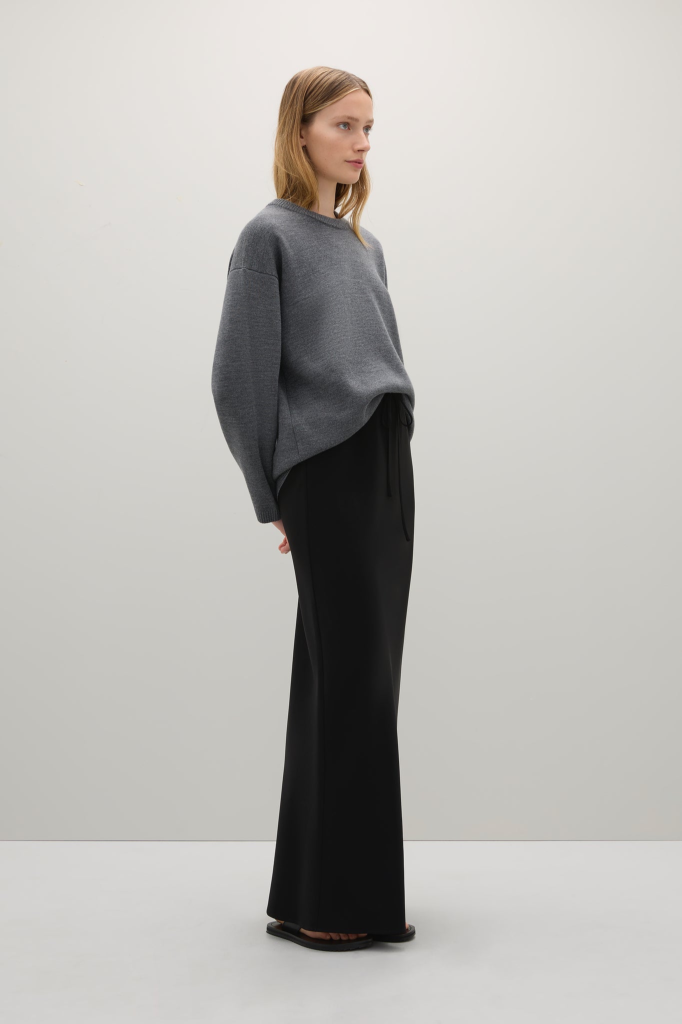 The Reid Crew Knit is a generously cut crewneck knit crafted from a luxurious merino wool blend. This garment is made with a delicate material, we recommend avoiding contact with abrasive surfaces and that special care is taken when wearing jewellery and accessories to prevent any damage.