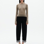 Slim fit long-sleeve top crafted from lightweight sheer knit fabric, offering a comfortable and breathable feel. Made using fully-fashioned knitwear techniques for a precise fit and high-quality finish. Constructed with GOTS organic cotton, ensuring sustainability and eco-friendly production practices. Available in sizes XS, S, M and L.
