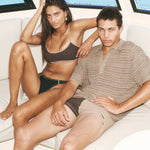 As part of Nagnata’s first Swim Surf Sport capsule, the Sundown Surf Short is a play on Nagnata’s signature colour block styles with contrast colour flatlock seams true to its sports-meet-fashion aesthetic. An improved mid-rise mini fit, the surf short is made from a specialised GRS certified Italian recycled bonded fabric that offers durability and support to take you from studio to surf. All swim surf styles feature new branding with a retro sun-inspired logo, a fresh take on the original Nagnata mandala.