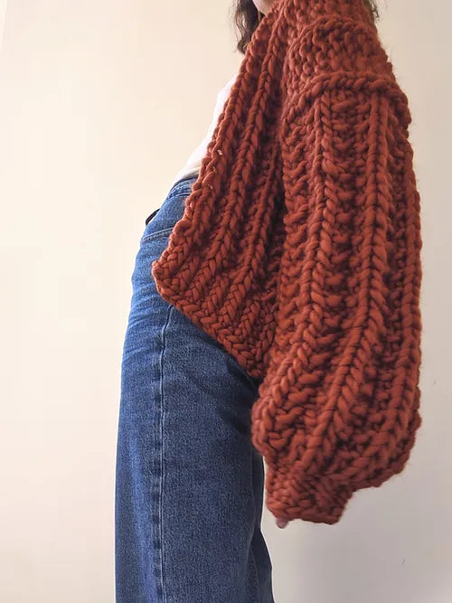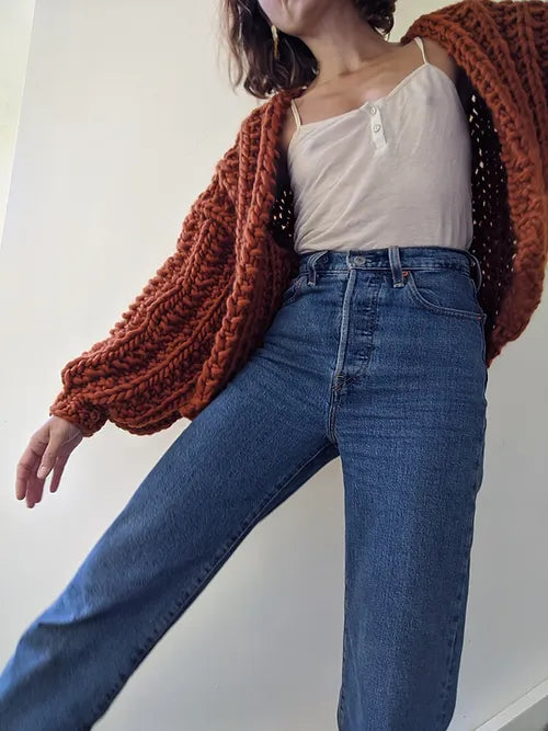 Stay warm and stylish with this chunky cardigan made from soft Peruvian wool. It's available in one size (XS-M) and is ethically sourced and produced. To take care of any pilling, gently remove it with scissors or a razor. The wool used in this cardigan is sourced from family-run farms in the Andes and is dyed with low impact certified dyes for a happy and sustainable planet.