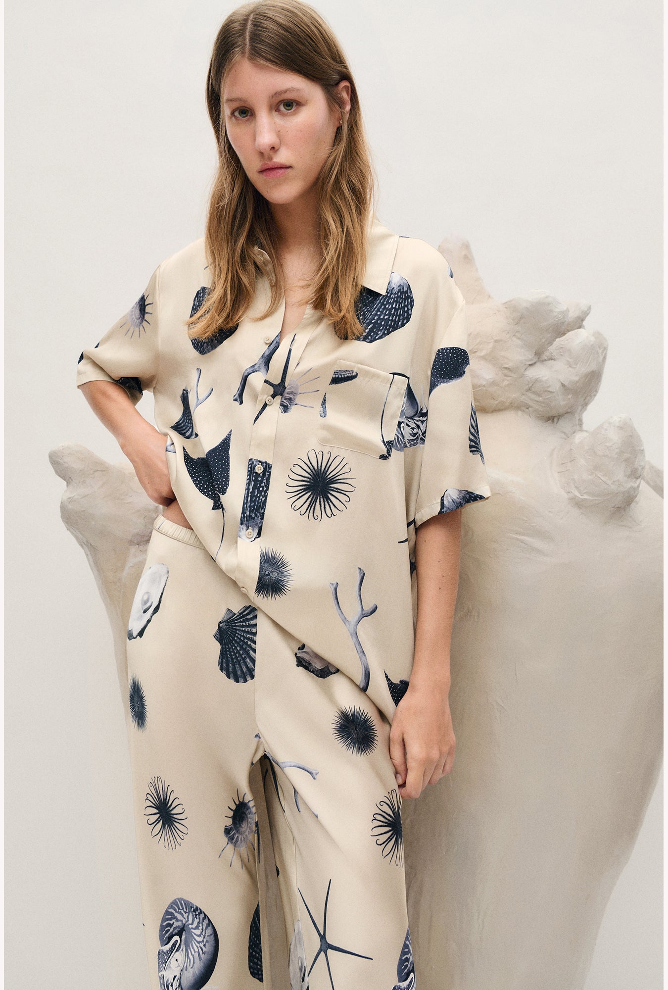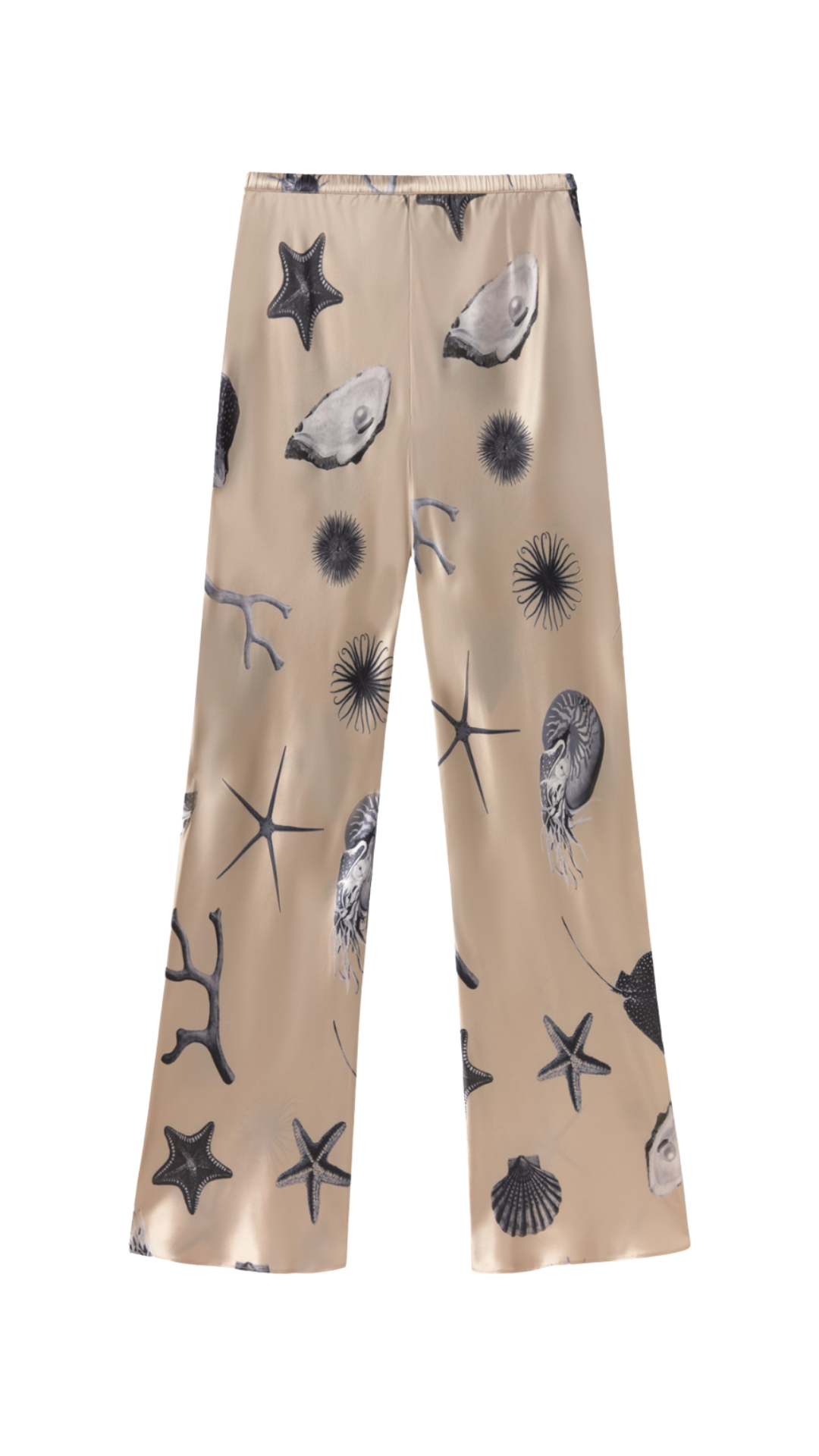 The Bias Cut Pants in Seashells by Silk Laundry.