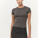 The Organic Cotton Baby Tee offers a timeless cropped fit with a classic crewneck and short sleeves. Designed for everyday comfort, this tee is made from 100% organic cotton, delivering an exceptionally soft touch and a sleek, fitted look.