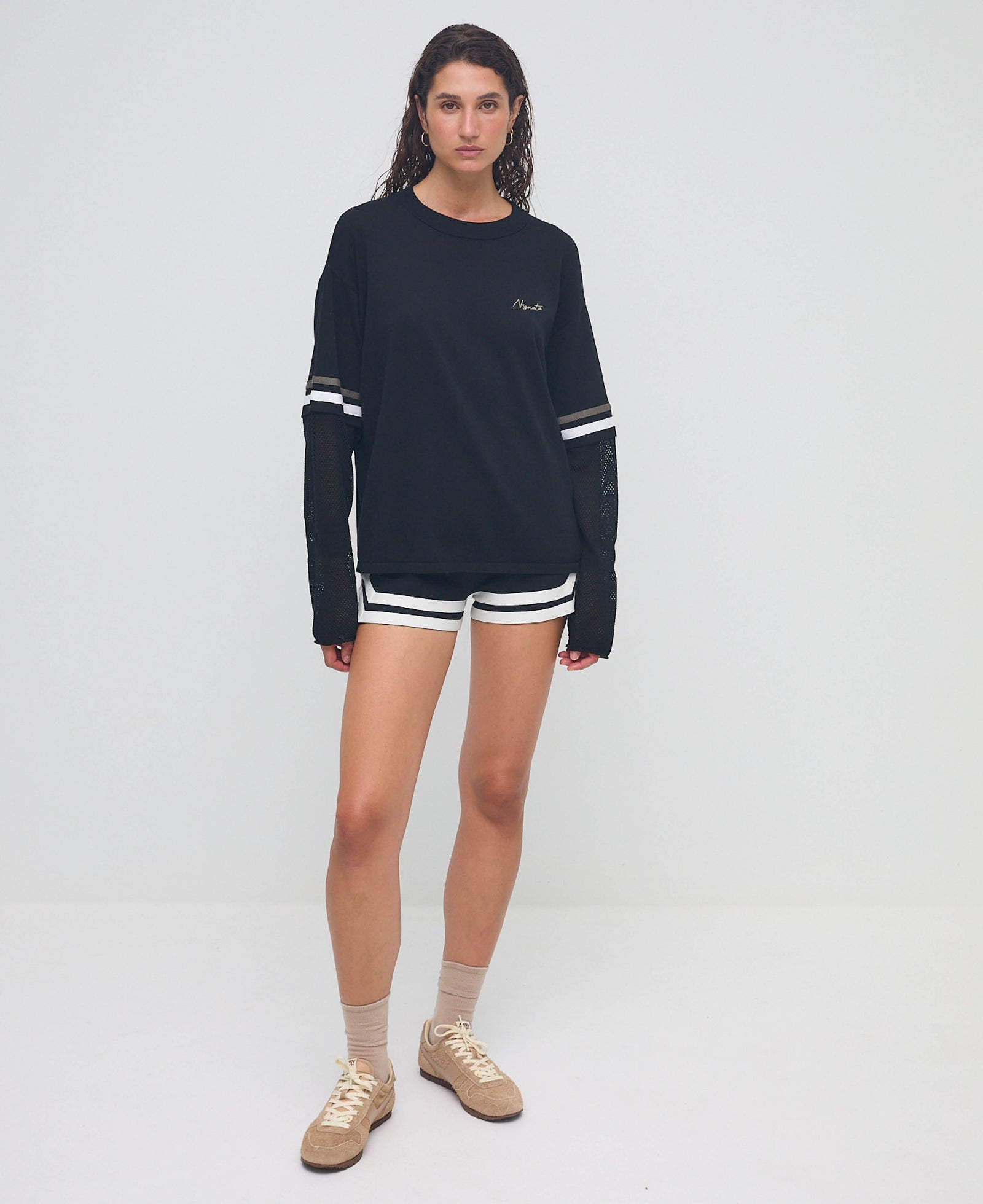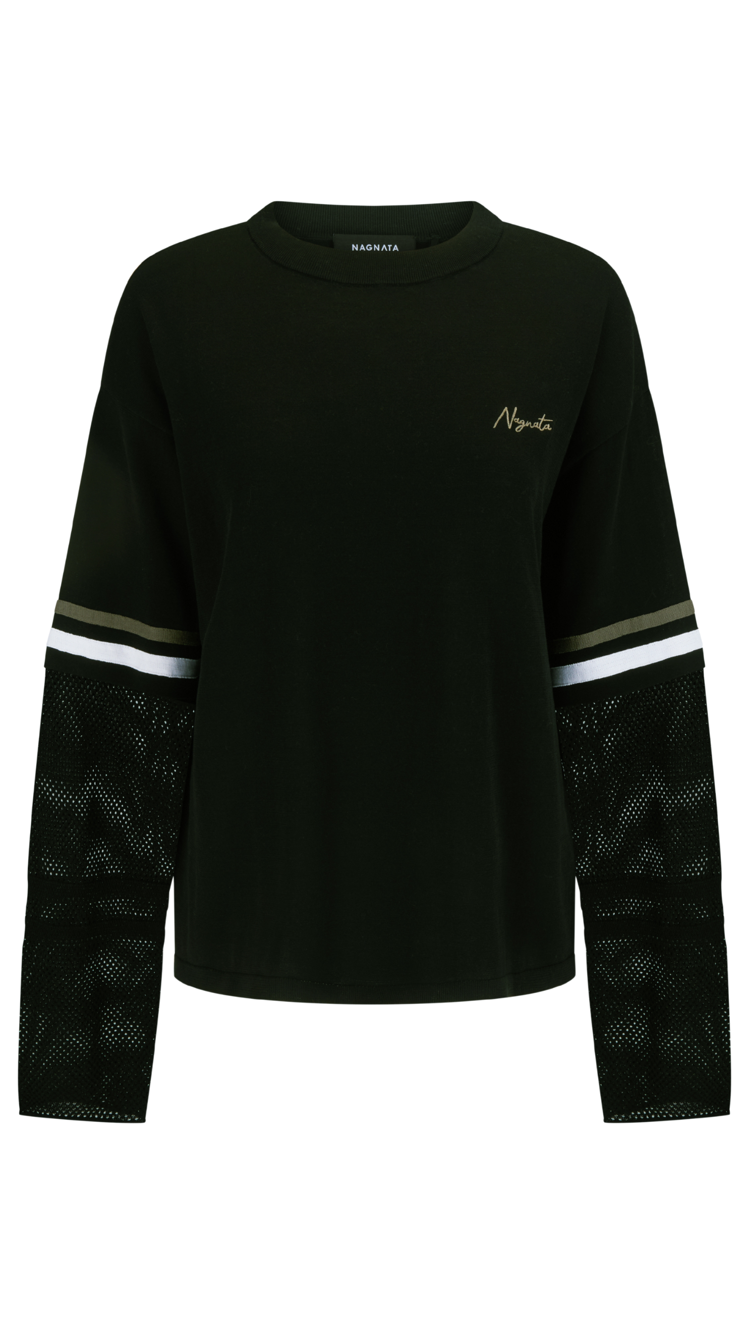 The Organic Mesh Jersey is a relaxed style fashion take on a classic raglan long sleeve and part of Nagnata's SAMA genderless collection. This midweight style features a mesh sleeve detail with contrasting tapes for added visual interest. Custom Nagnata logo graphics pay homage to 90's street aesthetic.