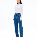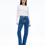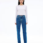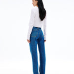 This signature style is designed to fit and flatter the feminine form, visually elongating the leg with a straight leg silhouette and high rise.