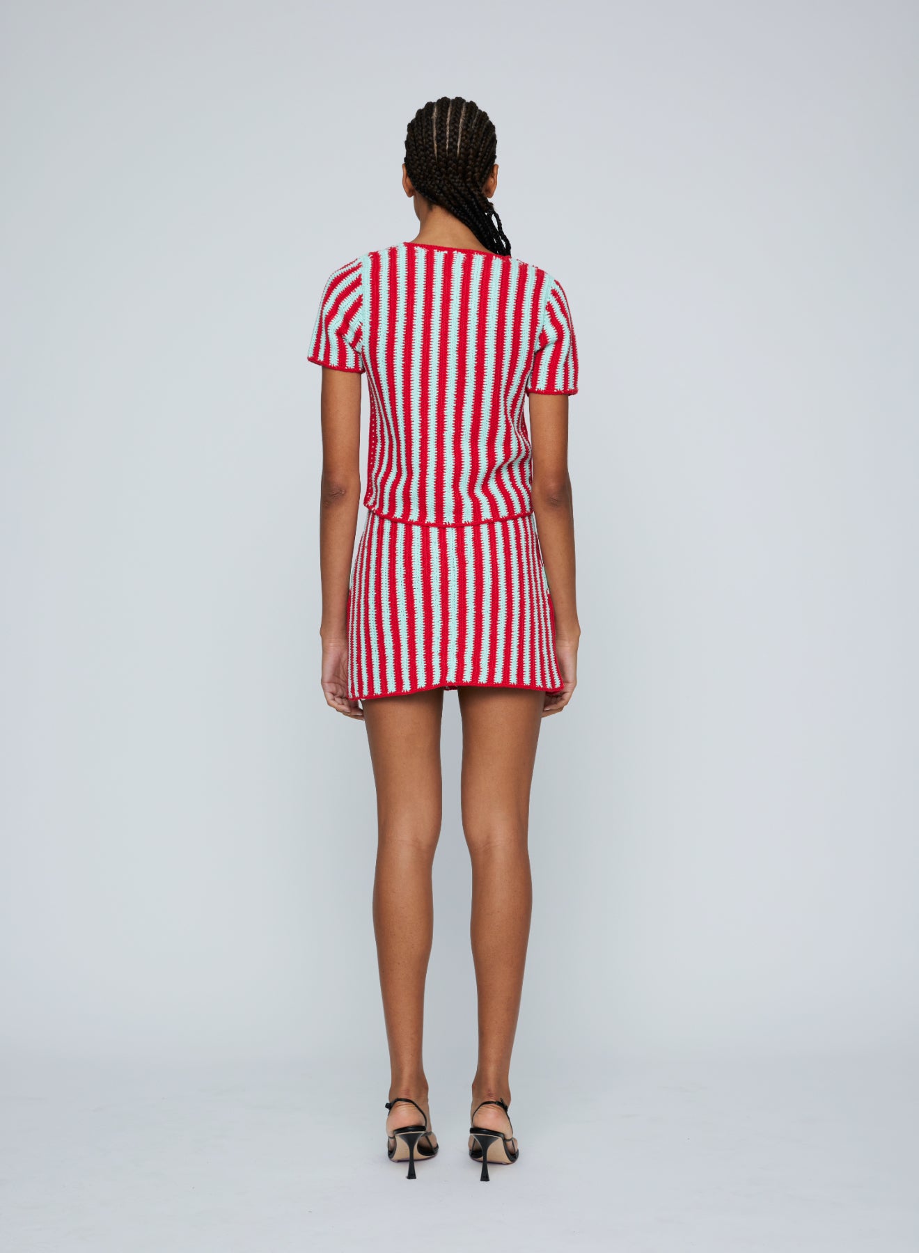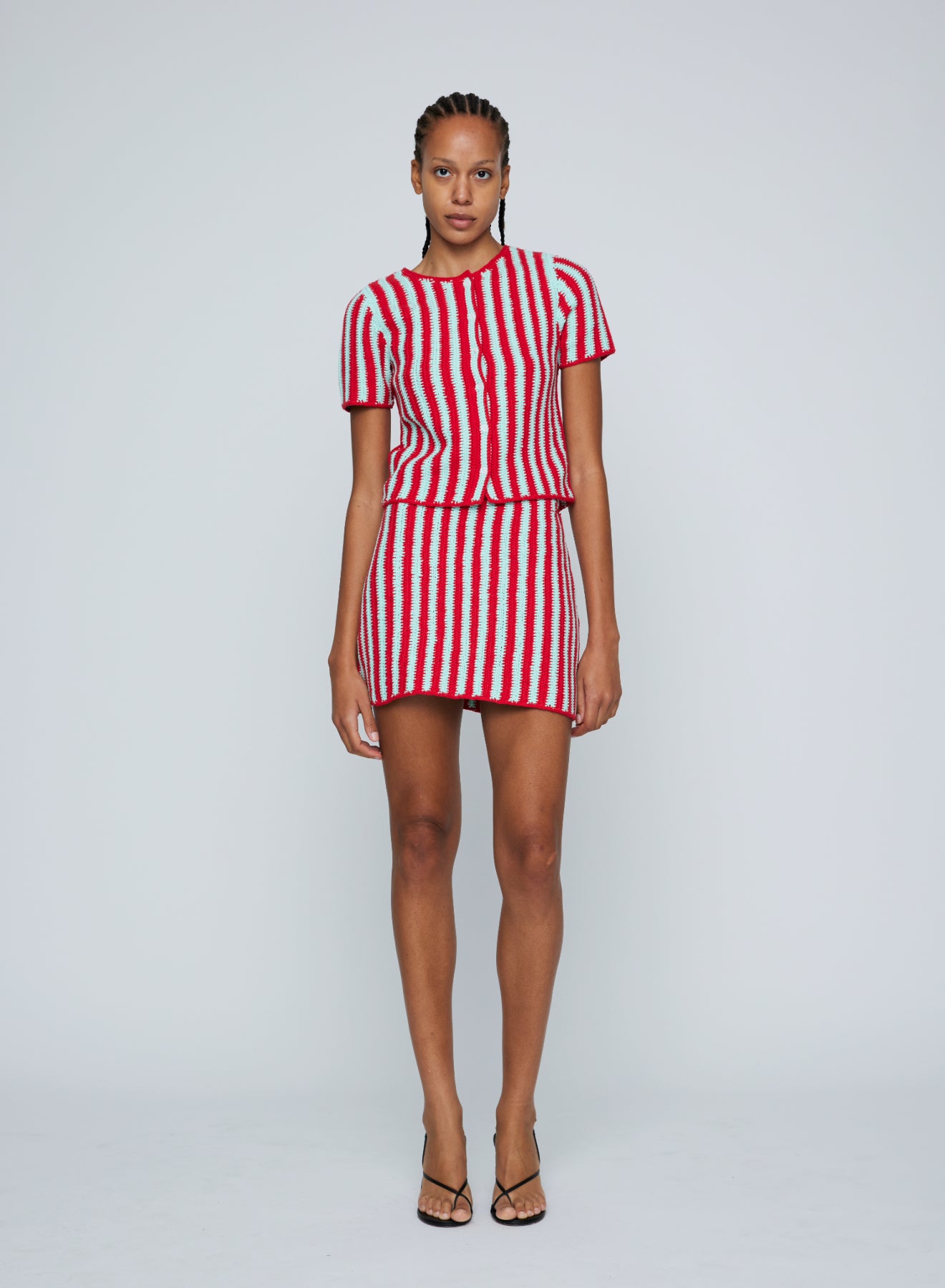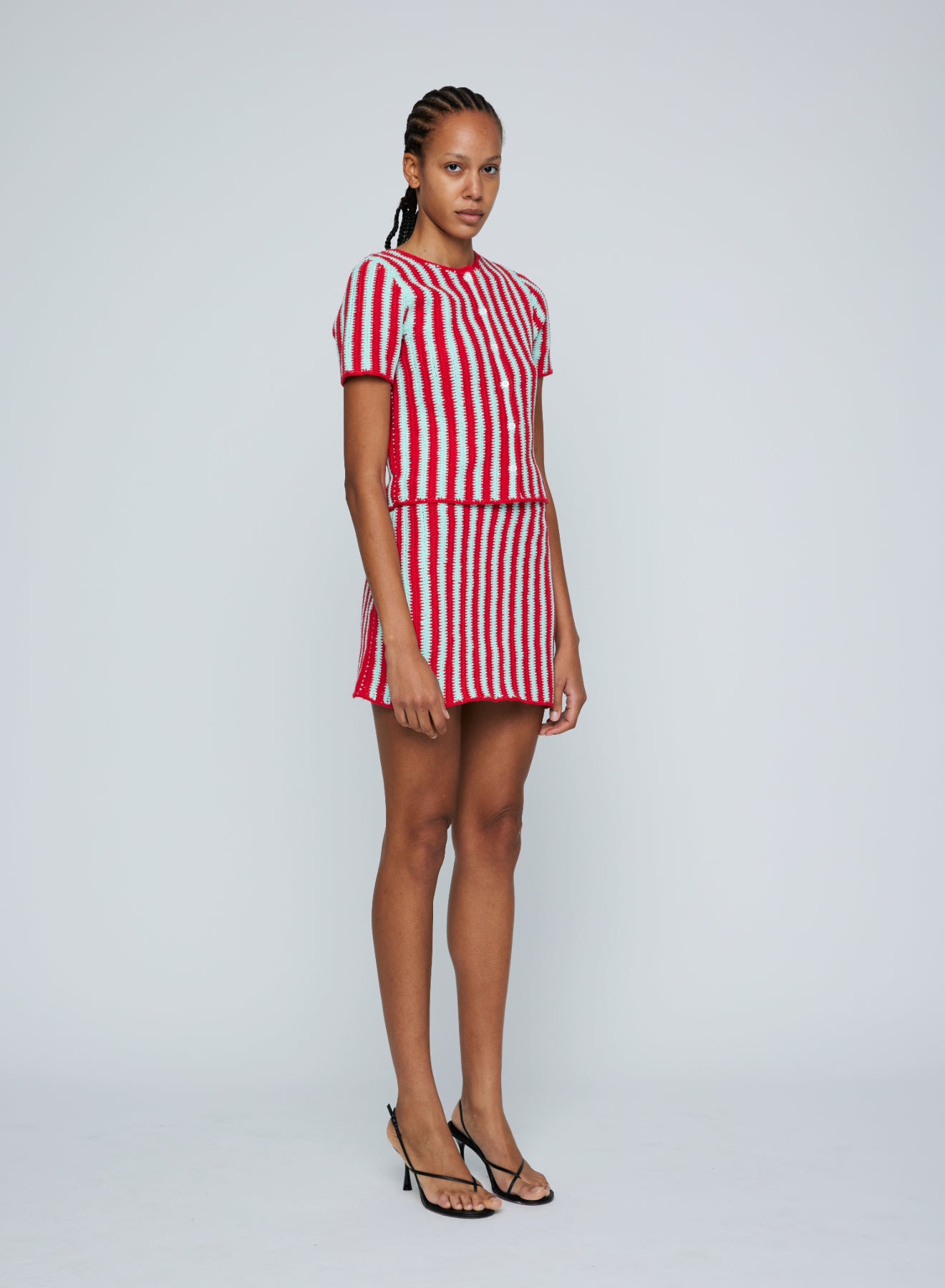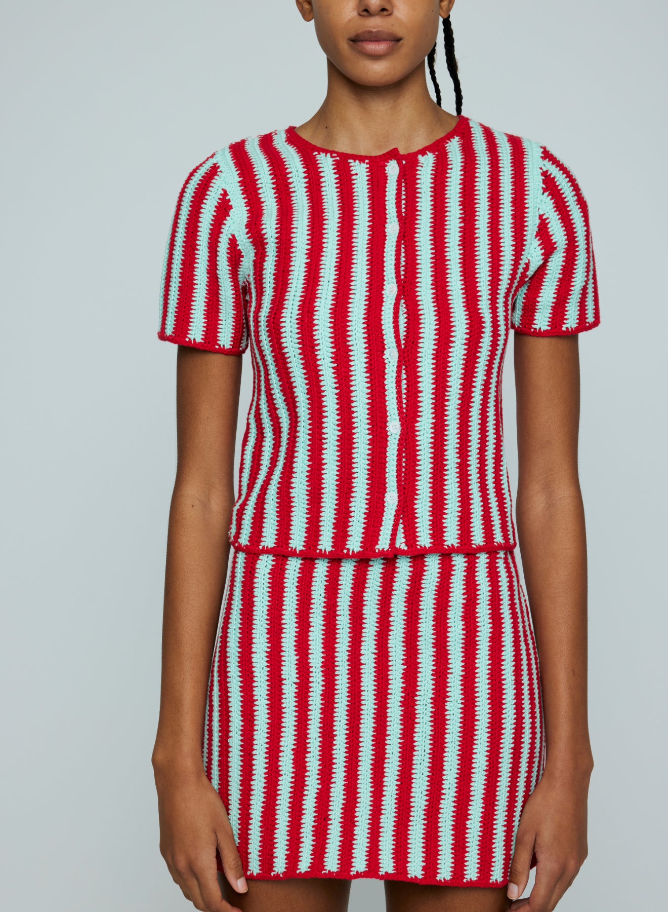 Zig Zag Crochet Skirt in Honeydew/Red by Wynn Hamlyn.