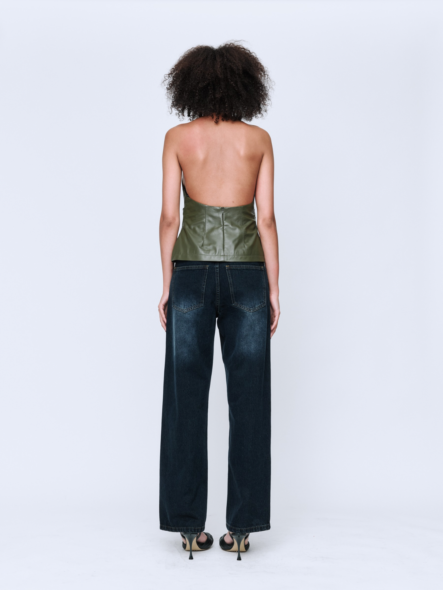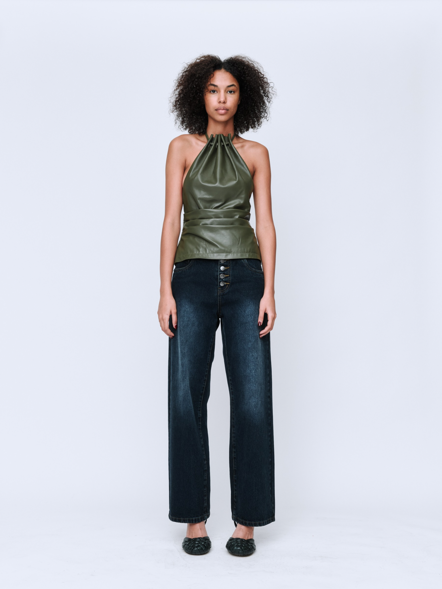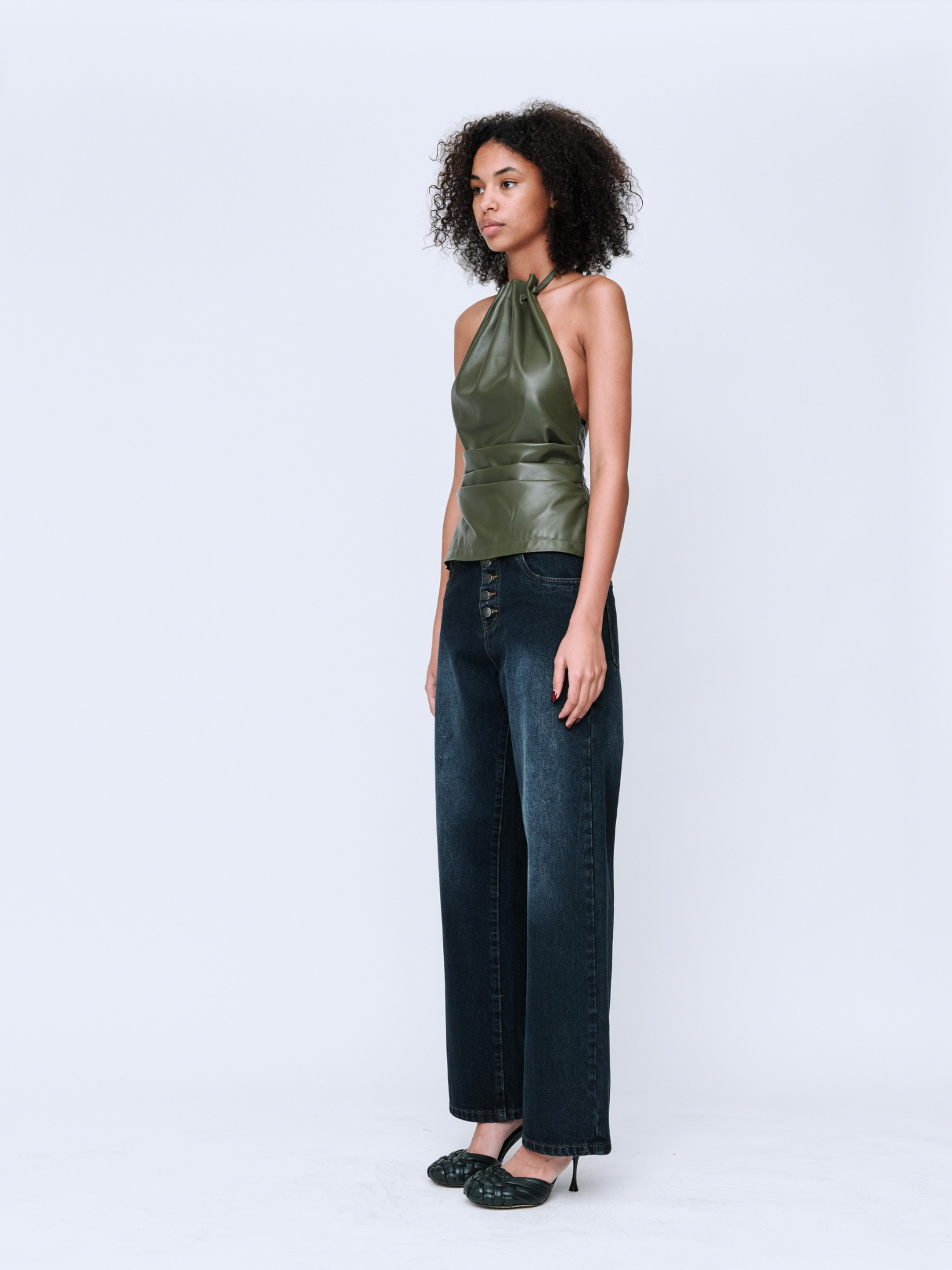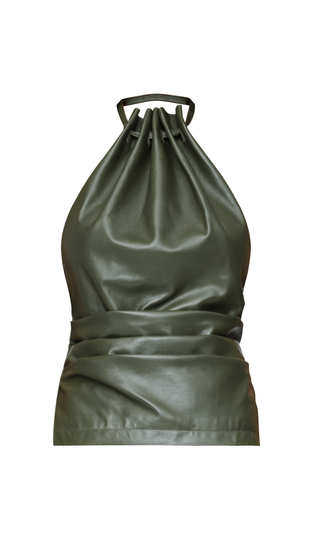 The Max Leather Top in Khaki by Wynn Hamlyn.