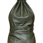 The Max Leather Top is a halter-style top in soft leather with ruching through the body for shape. Features a fitted silhouette with strong visual impact.